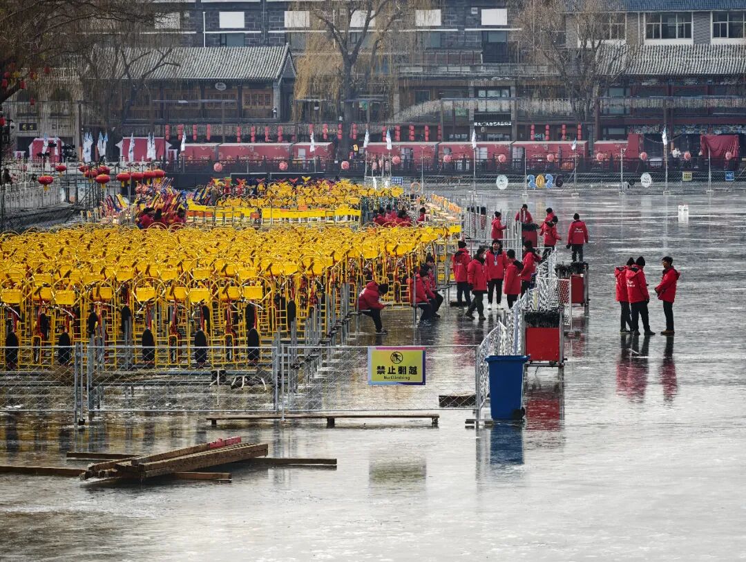 ▲1月9日下午,什刹海冰场开启试营业,工作人员在做准备工作。新京报记者 王巍 摄