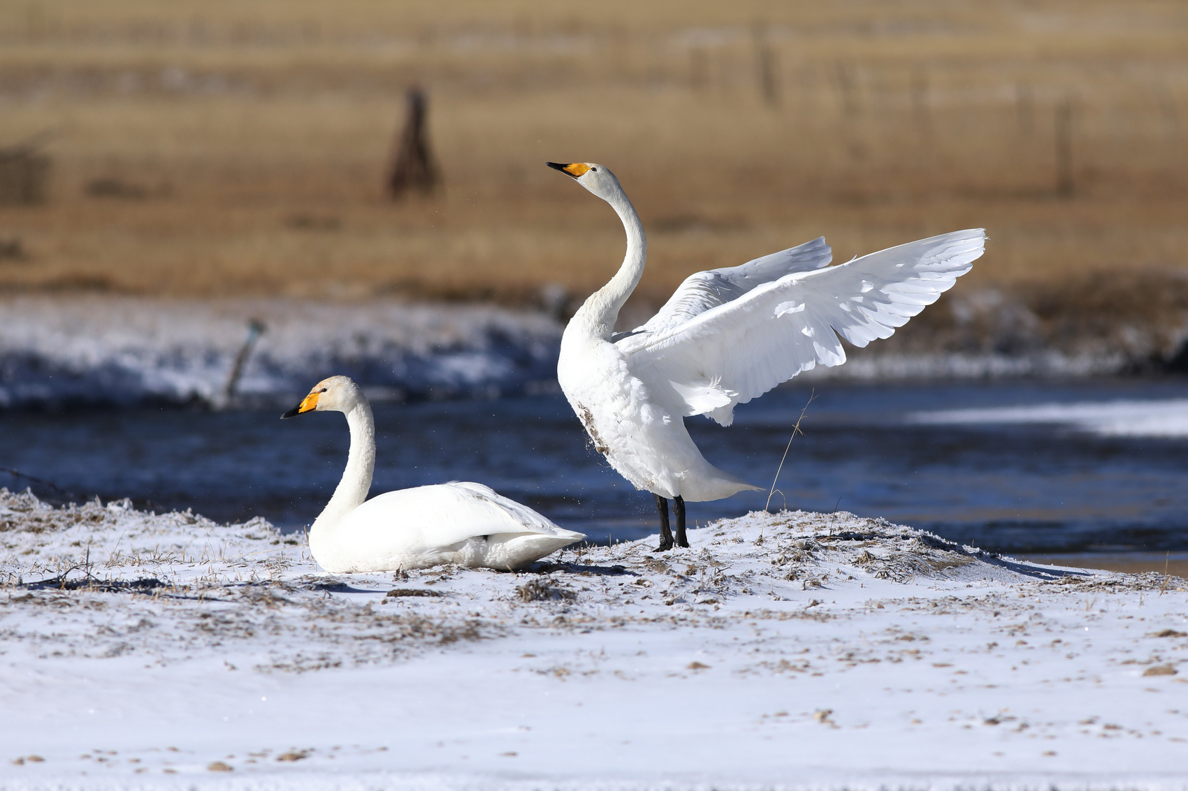 习性:喜栖息于开阔且水生植物丰富的浅水水域,冬季集群活动于水生植物丰富的湖泊、河流、沼泽、水库以及农田地带,有时与其他天鹅及雁鸭类混群。