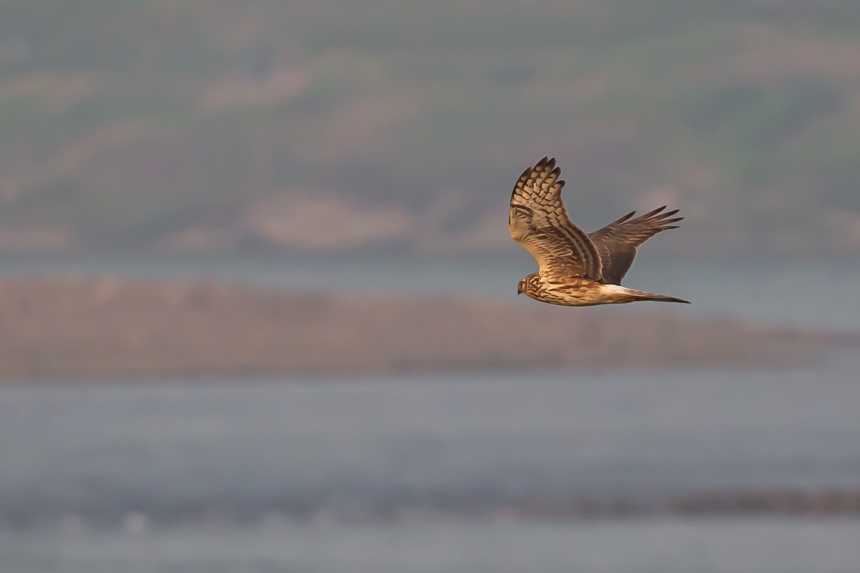 辨识要点:雄鸟整体青灰色,翅尖黑色,容易辨认。雌鸟稍大,通体褐色,下体满布深色纵纹,腰部白色十分突出。