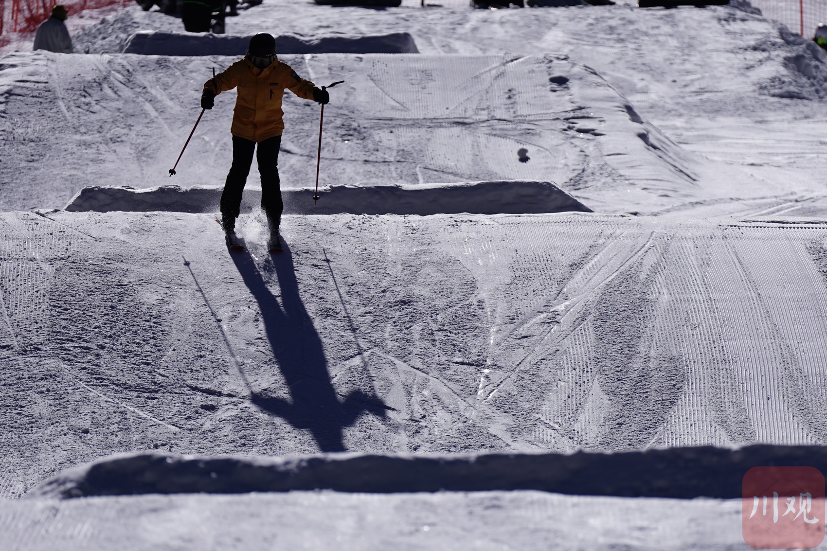 1月10日,四川省第八届全民健身冰雪季高山滑雪公开赛、大众滑雪技术达标赛在阿坝州羌人谷滑雪场。首个比赛日吸引了两百多名参赛者。