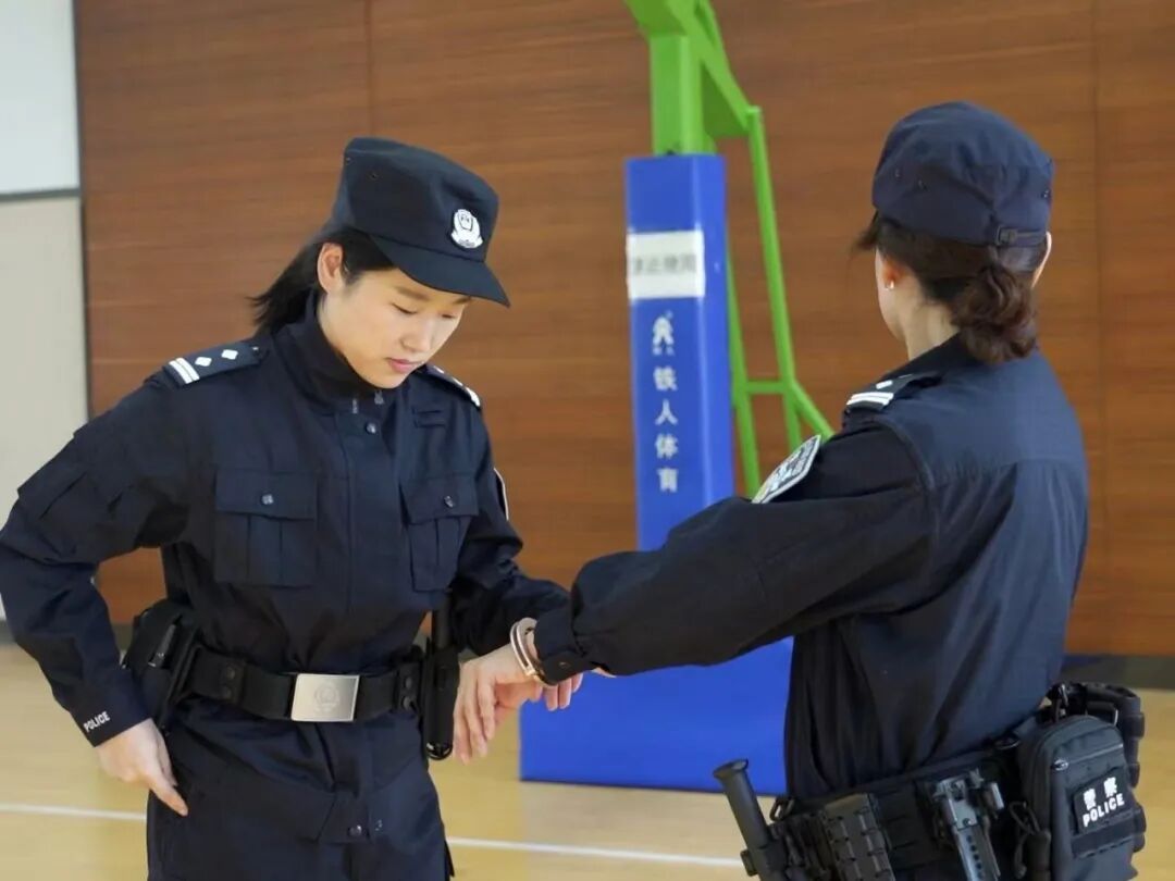 女法警参加警械具使用科目训练。