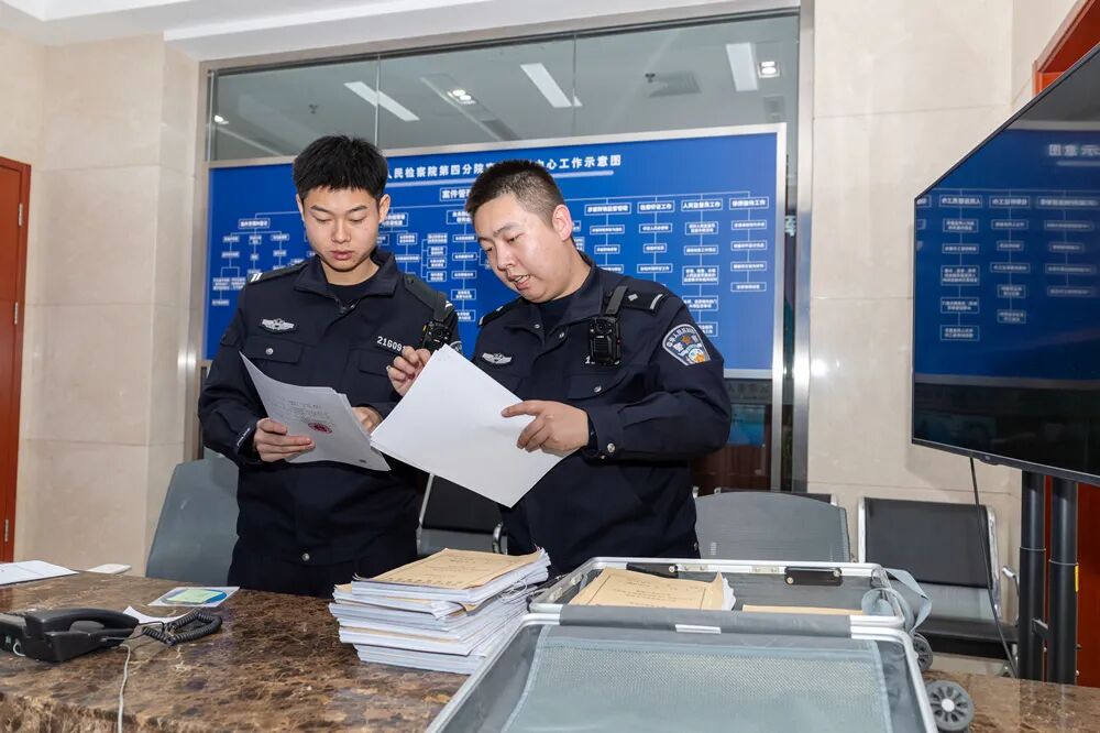 图②:2026年1月4日,司法警察佩戴单警装备,准时出现在北京市检察院第四分院案件管理中心,完成文书送达任务。