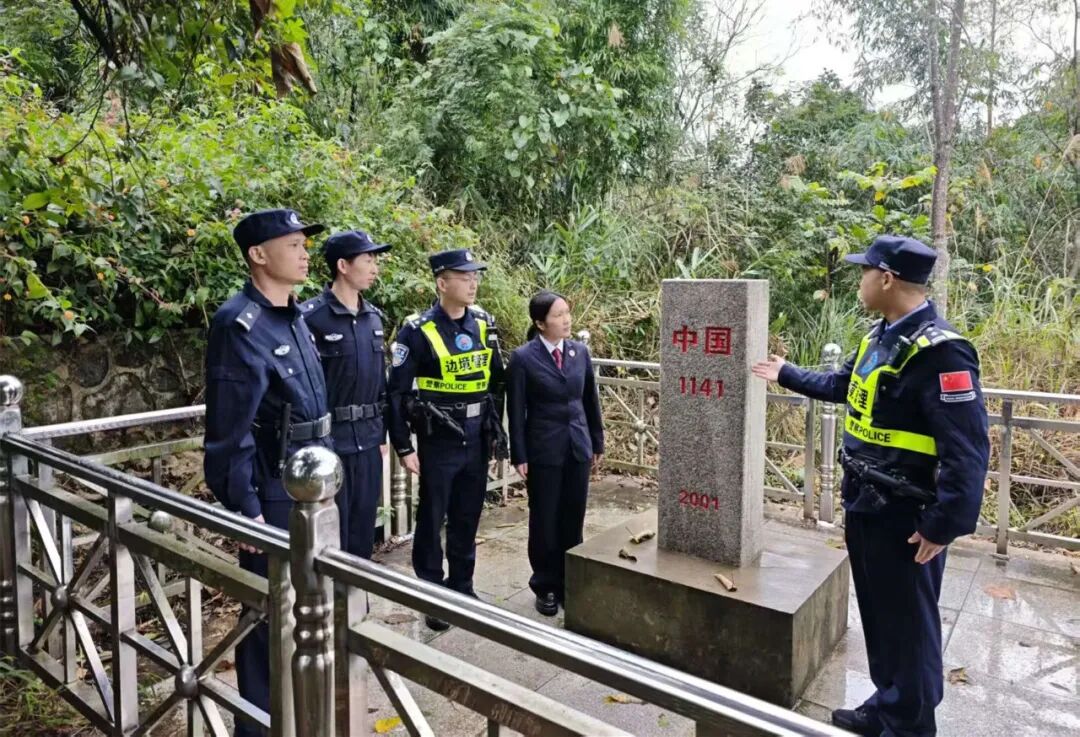 图①:2026年1月5日,广西壮族自治区崇左市检察院、凭祥市检察院司法警察配合公益诉讼检察部门对边拦阻设施和界碑管护情况进行巡查。