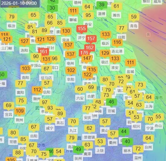 目前江苏北部地区的污染天气比较严重。