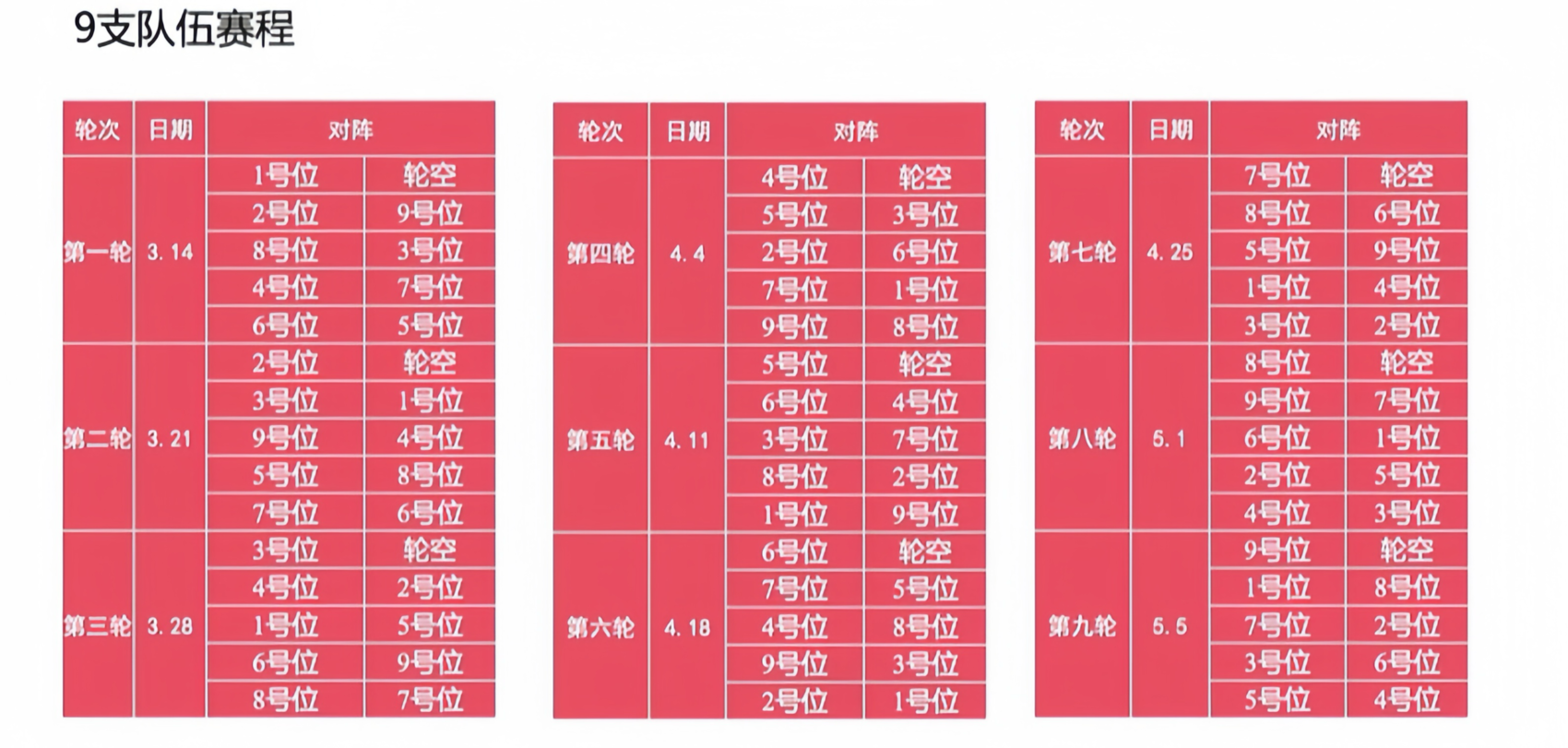 根据今日现场抽签结果,首轮对阵中,绵阳九洲长虹队对阵乐山味道非常队;自贡灯城燊龙队对阵宜宾长江首城队;达州川汉子队对阵凉山好医生队;南充丝绸源点队对阵成都锦城队;德阳重装队轮空。