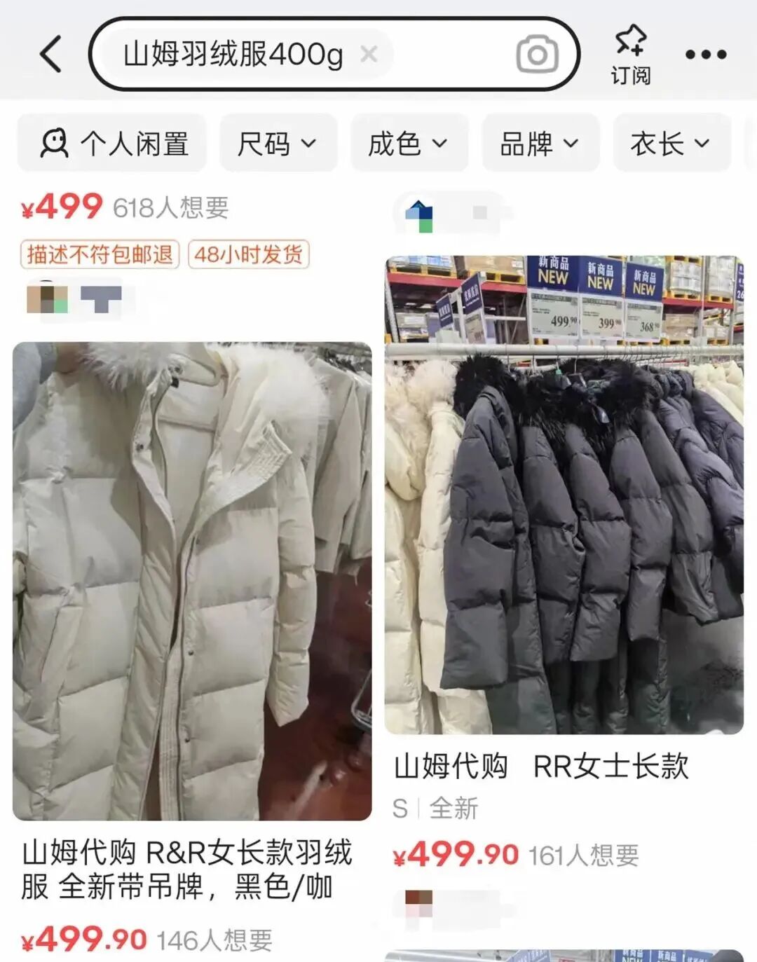 近段时间,山姆会员超市售价499元充绒量达400克的羽绒服卖爆,不少网友购买后在社交平台分享体验,更有不少人在二手平台加价出售。