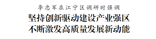 调研中,李忠军强调,江宁区经济体量大、产业基础好、创新活力强,要牢牢把握高质量发展这个首要任务,进一步放大优势、锻造长板,因地制宜发展新质生产力,培育壮大特色产业集群,着力构建更具竞争力的现代化产业体系,努力为全市大局多挑担子、多作贡献。