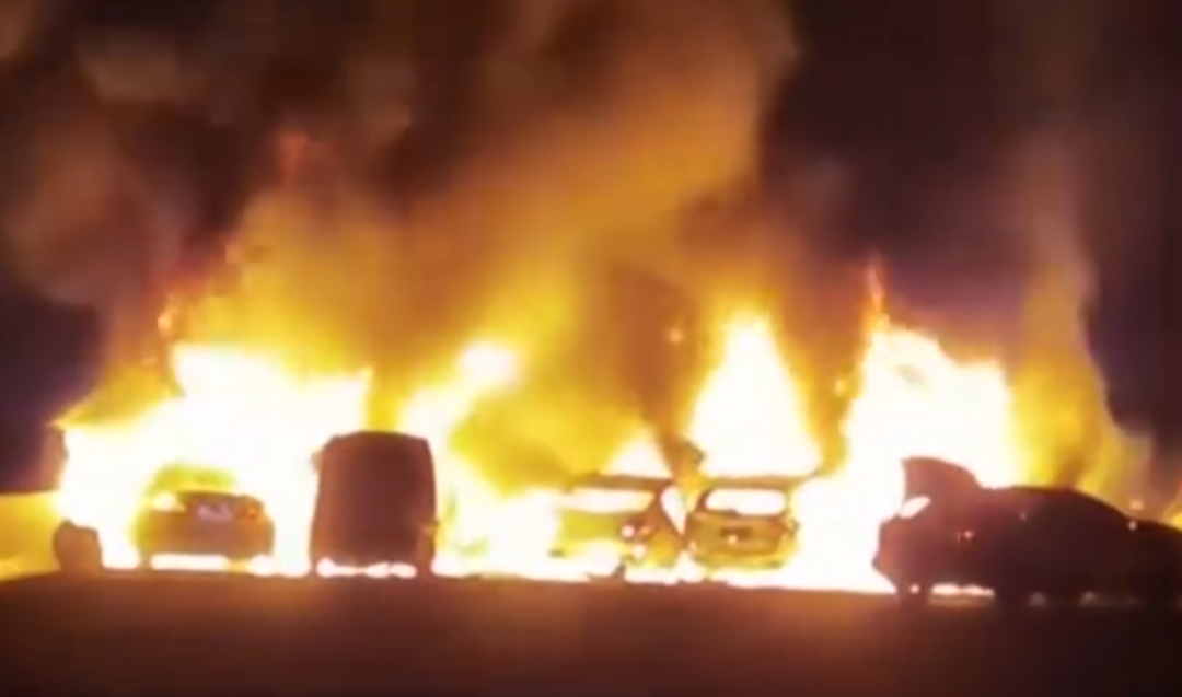 1月10日晚,湖南醴娄高速湘潭县段发生多车碰撞事故,多车起火燃烧。画面显示,起火的车辆把东往西方向道路完全堵住。