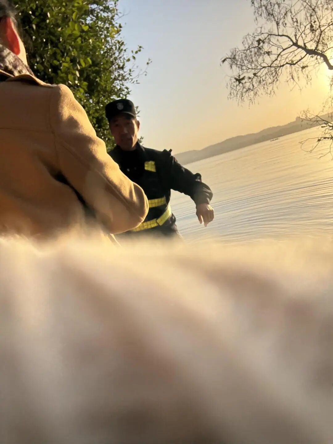 “我刚在西湖边看完日出,正在星巴克喝咖啡,看到保安带着一个全身湿透的女孩进来,应该是掉进西湖了。”小易说,自己是一名大四学生,即将去实习,趁着周末有空,特地来西湖边逛逛。“她头发都湿透了,确实有点狼狈。大家纷纷帮忙递纸巾、找毛毯。”小易没有犹豫,主动留下来陪伴她,直到把她送上车后才离开。