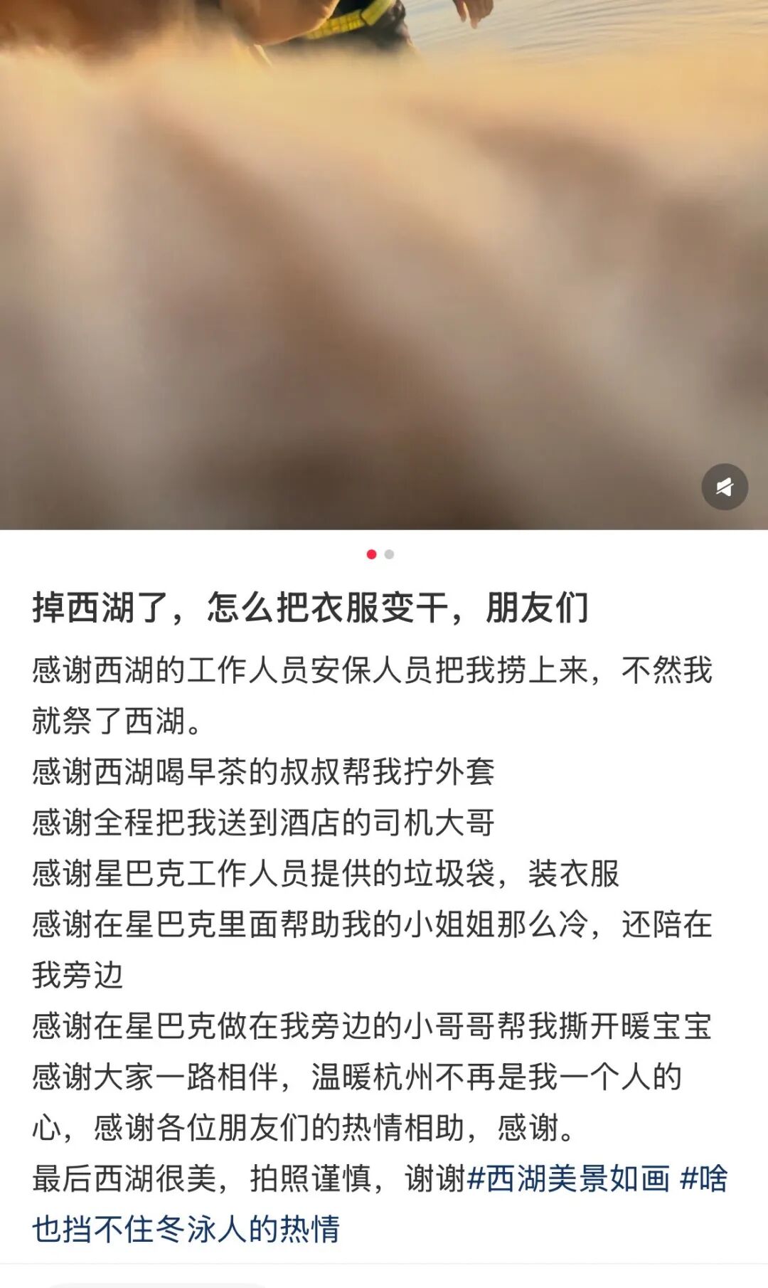 1月11日,一则题为“掉西湖了,怎么把衣服变干,朋友们?”的帖子在小红书平台走红。