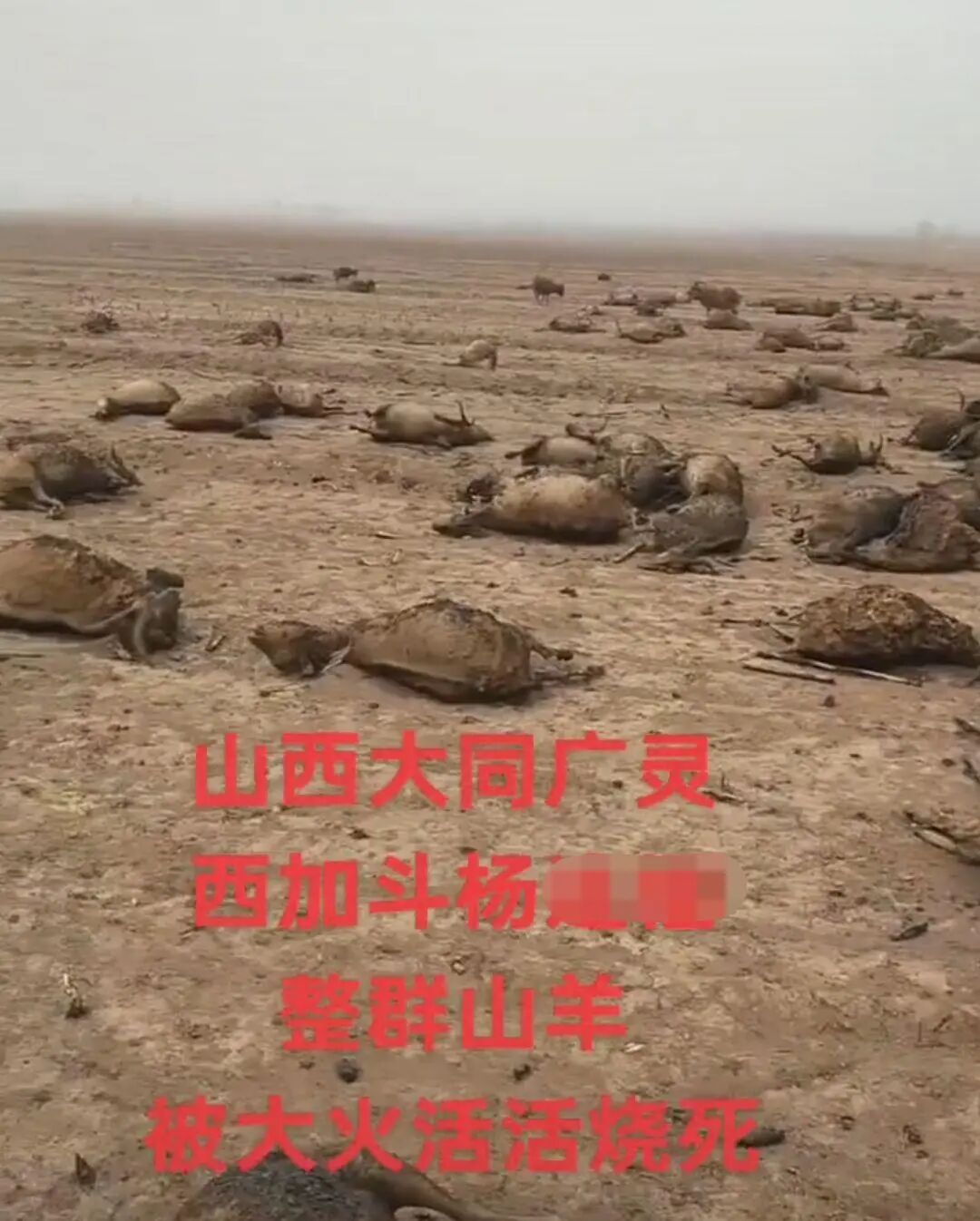山西大同广灵县西加斗村一村民的170只羊被大火烧死(来源:受访者)