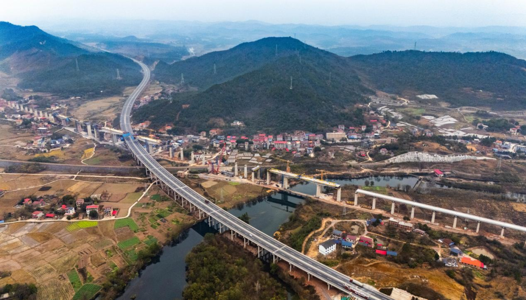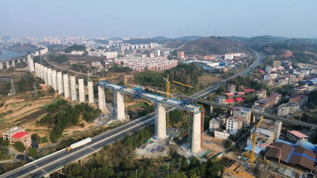 该特大桥由中铁二十五局承建,全长3050.955米,需跨越高速、铁路、省道及河流,是邵永高铁全线的重点难点工程之一。