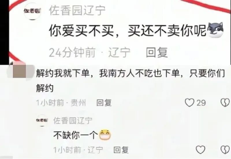 近日,演员闫学晶被质疑“炫富”,其代言的品牌“佐香园”也遭到抵制。其间,一个名为“佐香园辽宁”的账号发布“爱买不买”“就不解约”等言论,引发热议。