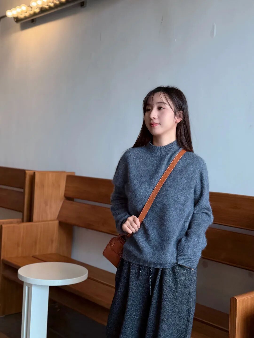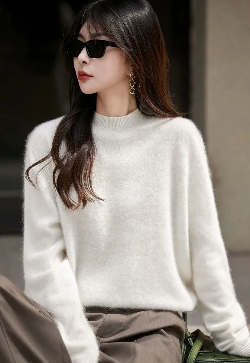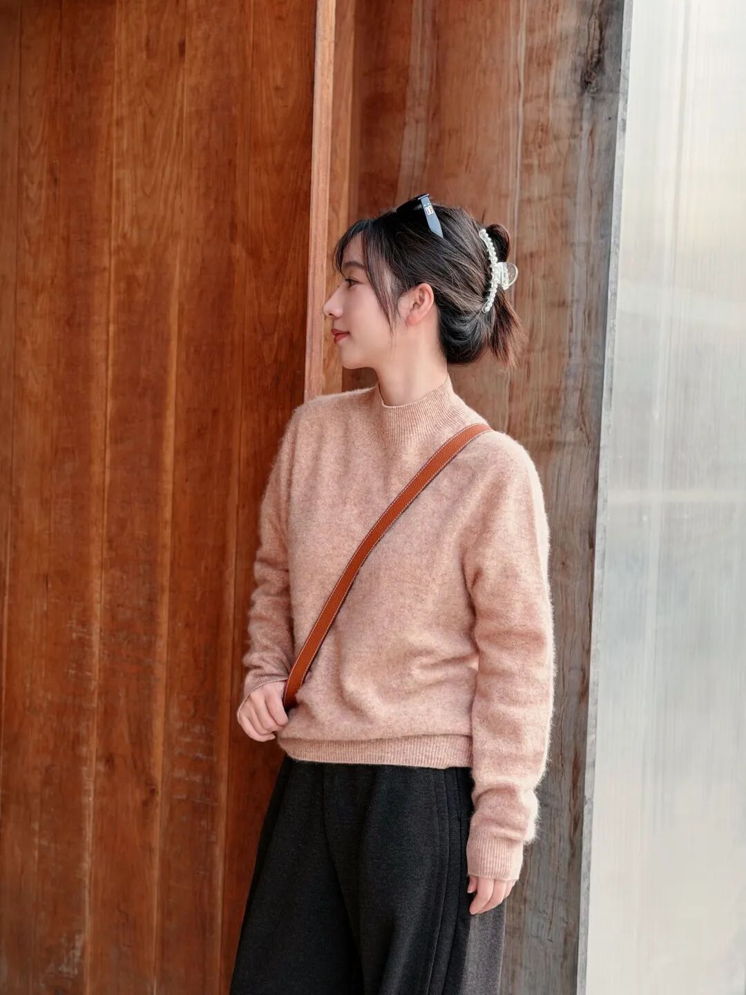 惬意感拉毛羊绒羊毛半高领,柔软慵懒。