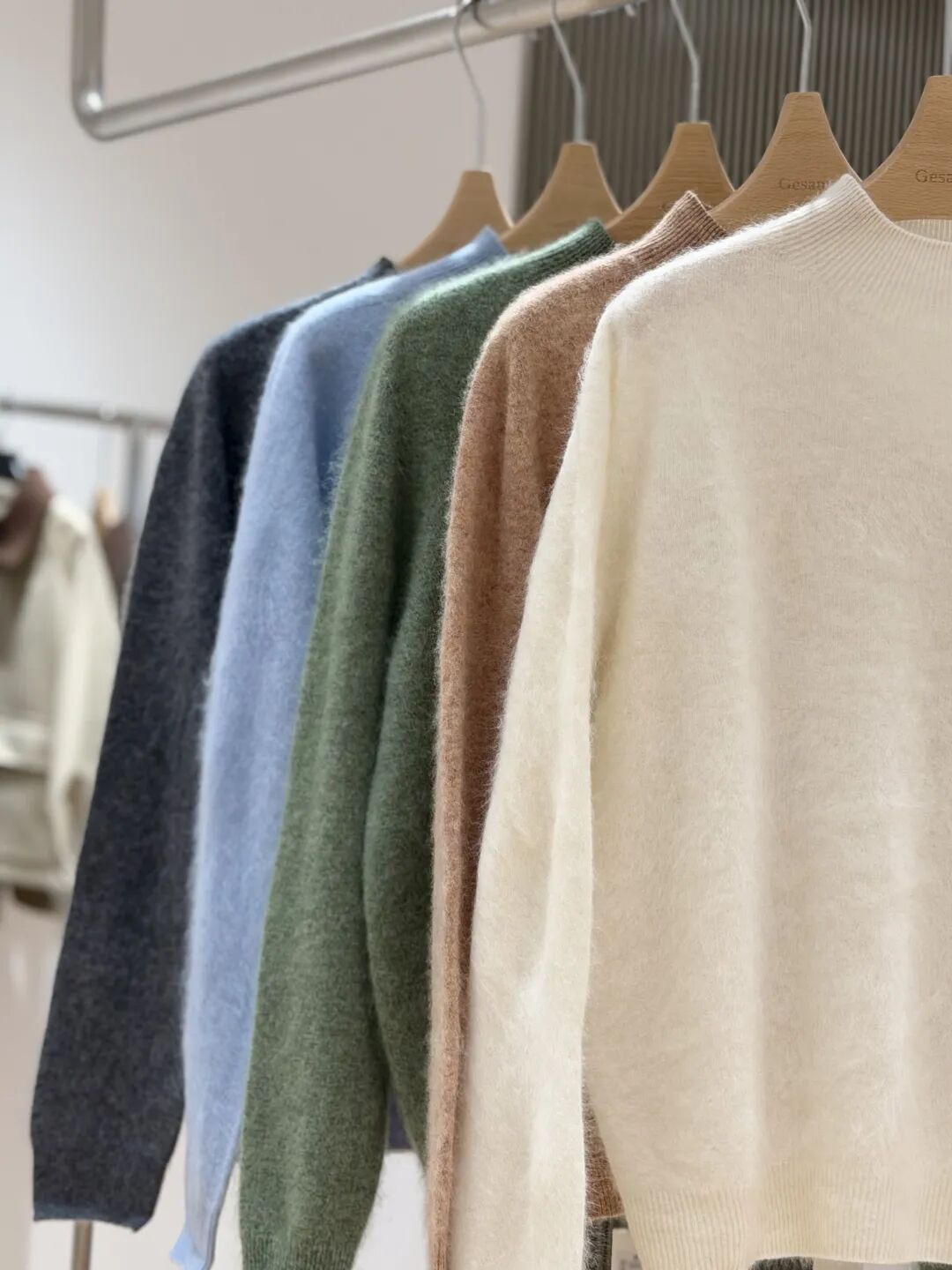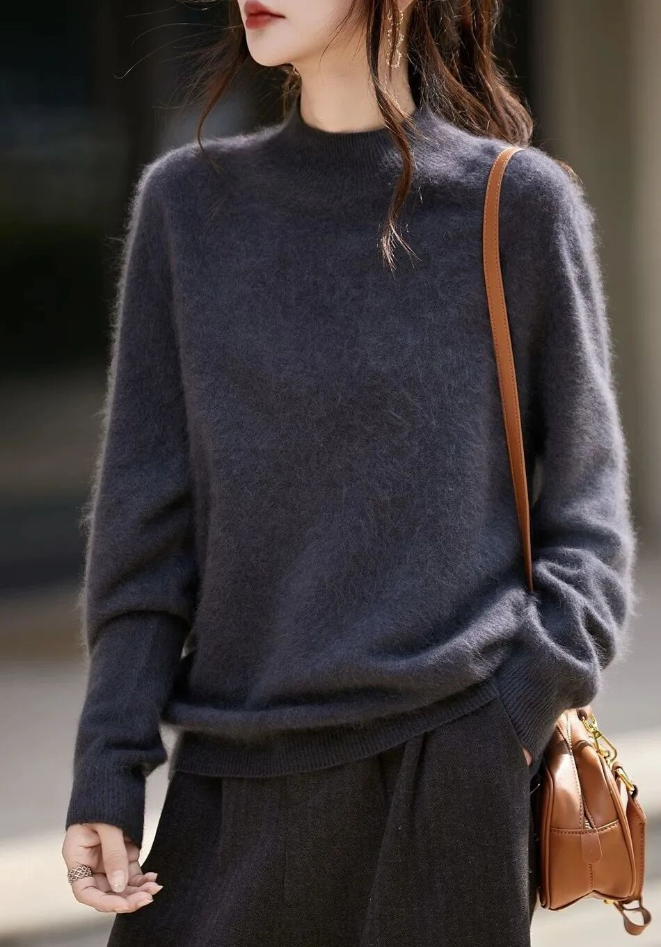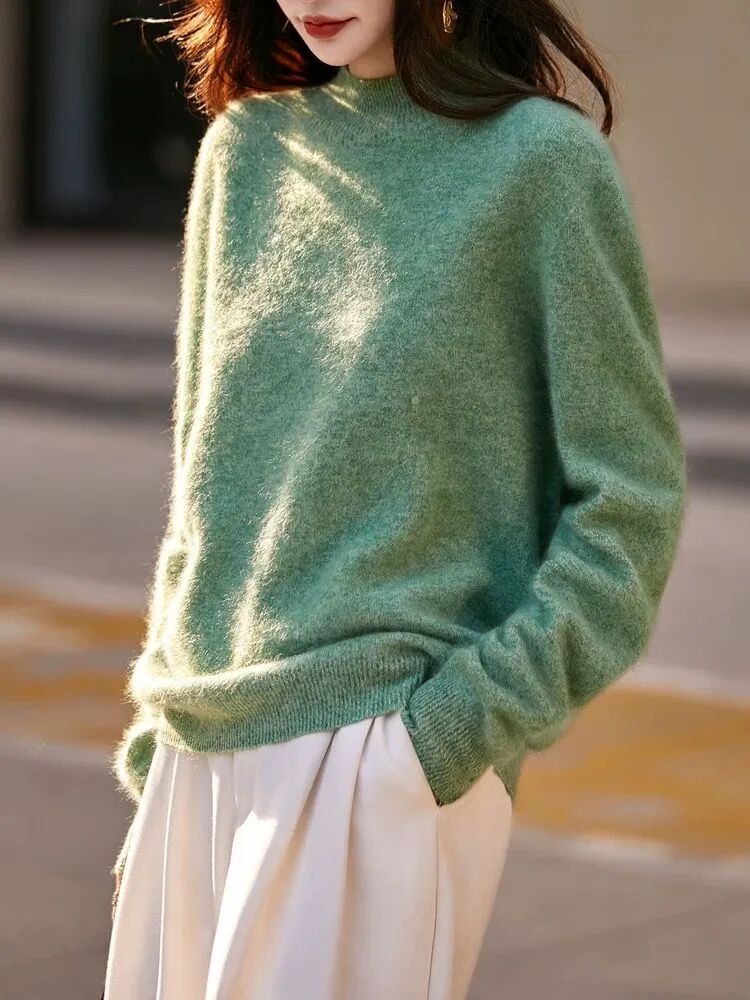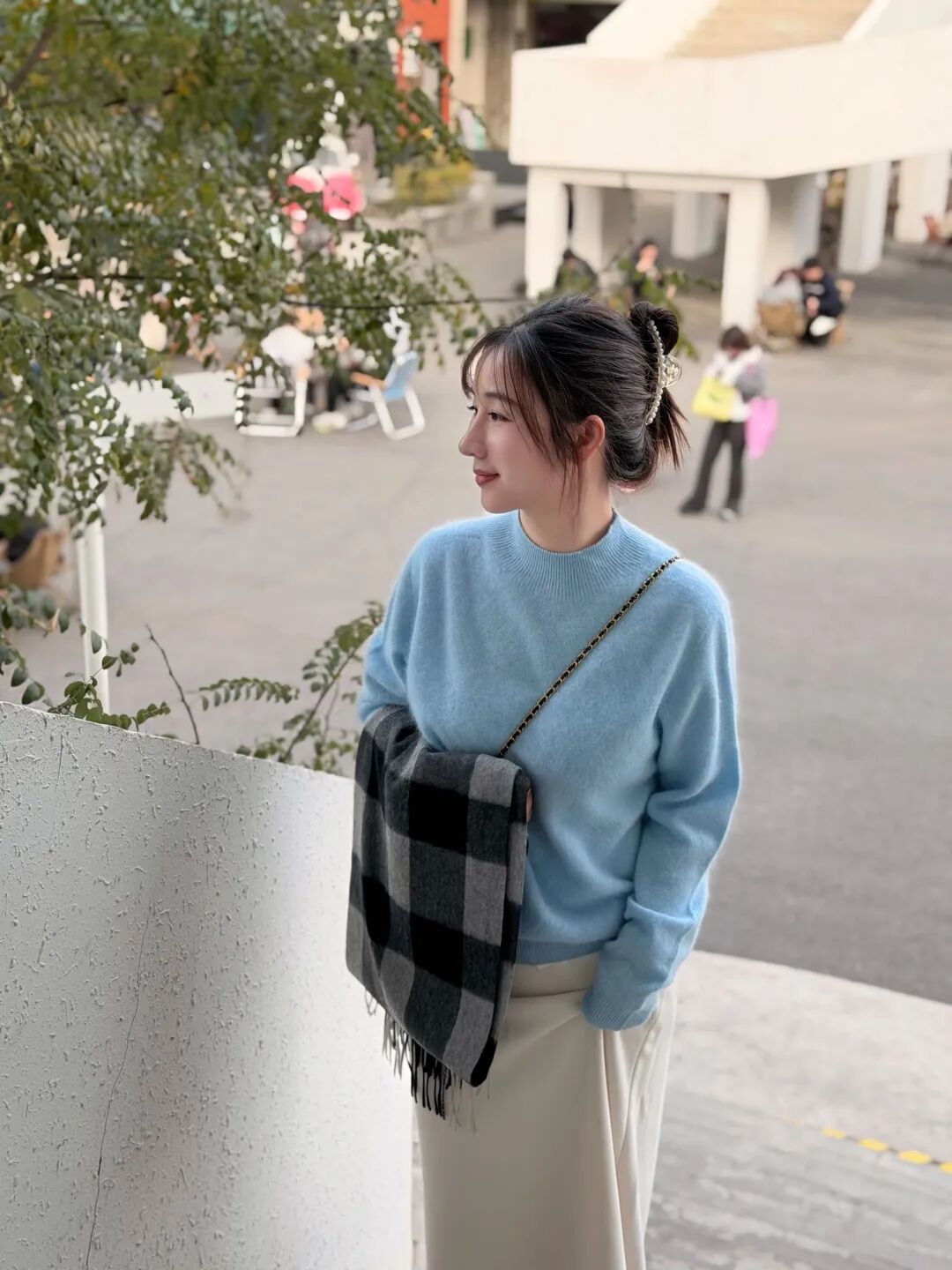惬意感拉毛羊绒羊毛半高领,柔软慵懒。