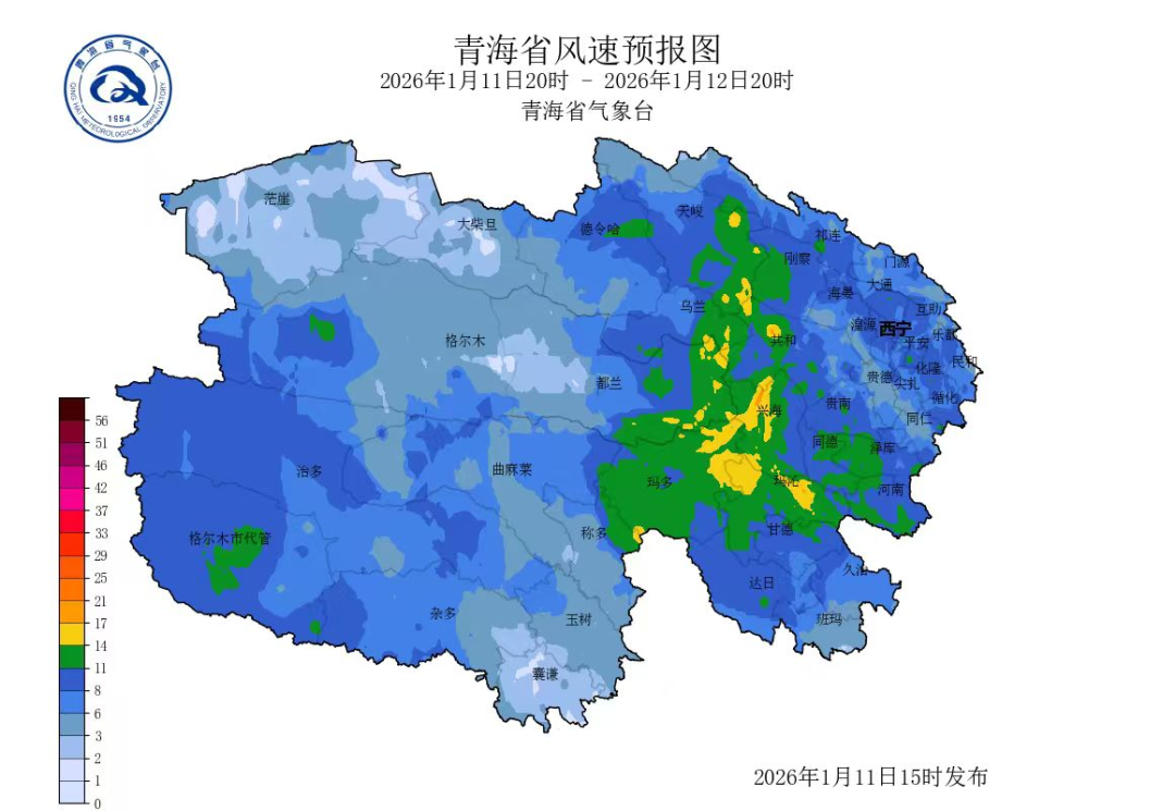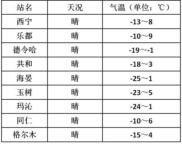 12日20时-13日20时:全省各地晴或多云。13日白天,海西西部、玉树西部、果洛大部有6~7级偏西风,阵风可达8级以上。