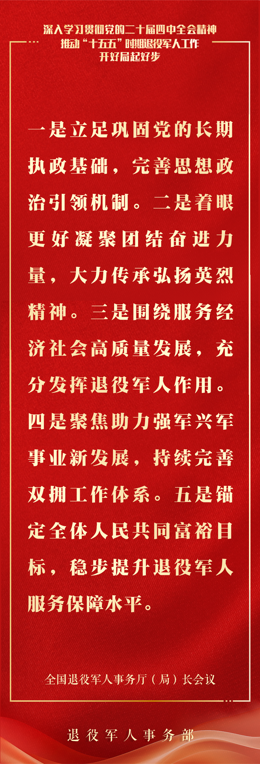 1月8日至9日,全国退役军人事务厅(局)长会议在京召开。退役军人事务部党组书记、部长裴金佳出席会议并讲话。现摘录部分内容,予以刊发。
