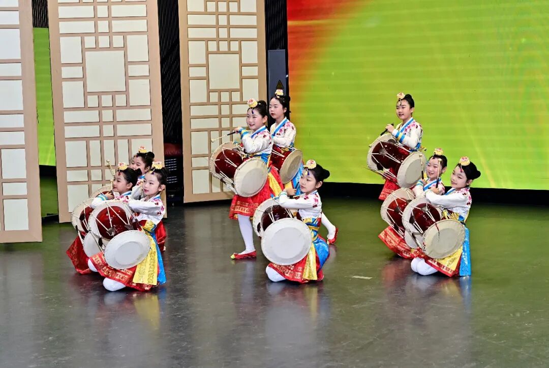 活动中,延吉市中央小学、北山小学的同学们为远道而来的“雪山雏鹰”们带来了长鼓舞《小小长鼓幸福梦》、象帽舞《红太阳照边疆》,并唱响《春天的阿里郎》《欢迎你到延边来》。随后,来自日喀则的师生们也为现场延吉师生表演了藏族传统舞蹈——锅庄舞。他们身着色彩鲜艳的藏族服饰,伴随着悠扬的藏族音乐翩翩起舞,并与朝鲜族小朋友上台互动。伴着清澈的歌声和优美的旋律,一起体验彼此民族不同的舞蹈风格,他们手拉着手,共同感受民族大团结的幸福与美好。