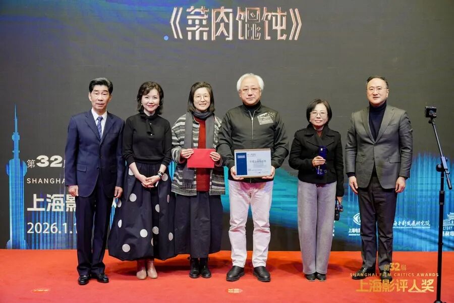 《菜肉馄饨》获得年度上海电影奖,剧组上台领奖,温情流动。编剧金莹说,“这个奖是对我非常大的鼓励,今天我第一次走红毯,第一次上台领奖。上海是海纳百川的,《菜肉馄饨》是大海中的一滴小水珠,呼唤更多爱上海、发生在上海的电影出现。”顾晓东说,“感谢70、80、90岁的观众走入影院看我们的电影。上海是滋养我们的城市,我们会继续拍摄上海的故事。”