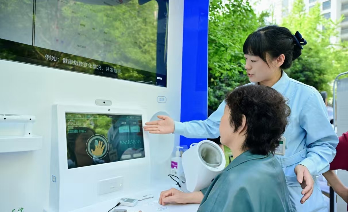 近日,成都市民在省四医院义诊活动中体验胶囊诊所。受访者供图
