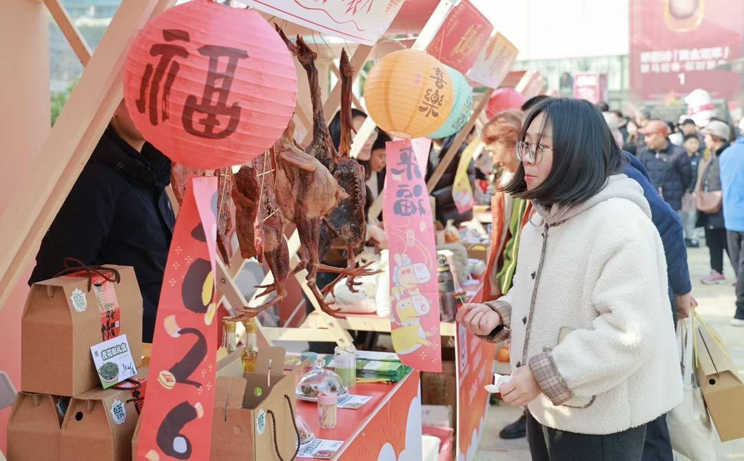 本次“村糖会”汇聚簇锦本土、金堂县、蒲江县等地的特色风物,设置40余家摊位。地域性展区里,簇锦本土的特色美食、金堂县的优质农产品、蒲江县的生态好物琳琅满目,散发着浓郁的乡土气息;品牌联动展区中,大悦城内优质商户、连锁品牌纷纷亮相,带来丰富的商品与优惠活动;特色体验展区则聚焦非遗好物与文创产品,让市民感受传统文化的魅力。一站式的服务,满足了市民采购与文化体验的双重需求,现场人流如织,热闹非凡。
