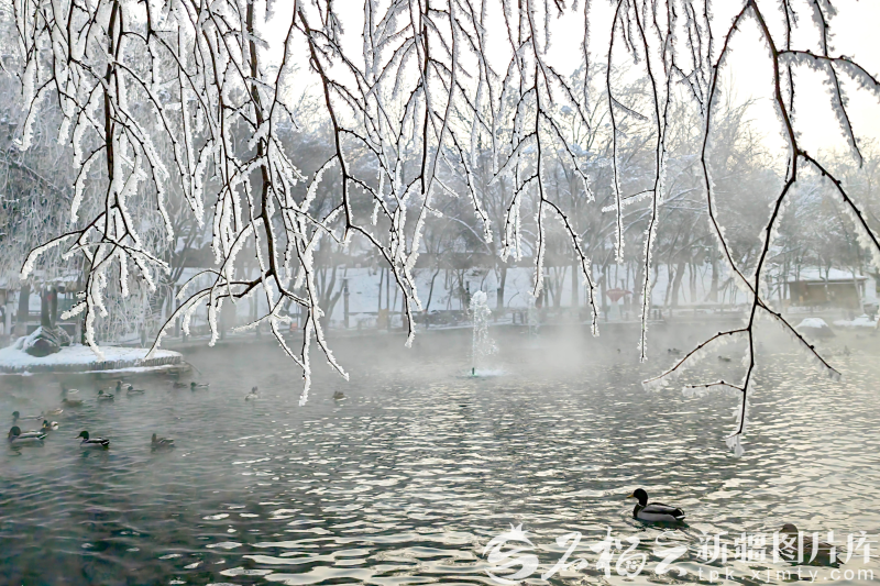 近日,野鸭在水磨沟公园的水面上游弋。石榴云/新疆日报记者 蔡增乐摄
