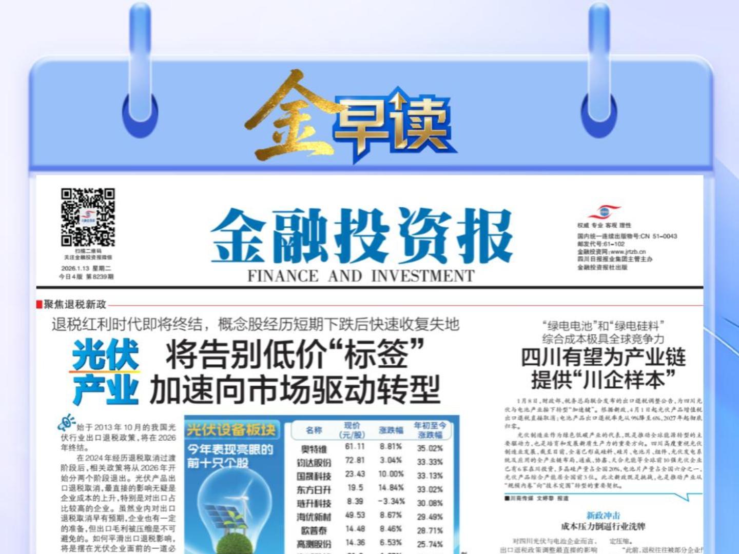 华福证券指出,光伏行业退税红利时代终结将有效抑制低价“内卷”,加速落后产能出清,倒逼企业向技术创新与品牌建设转型,并推动中国光伏企业加速全球化产能布局,利好具备高品牌溢价与技术优势的龙头企业。