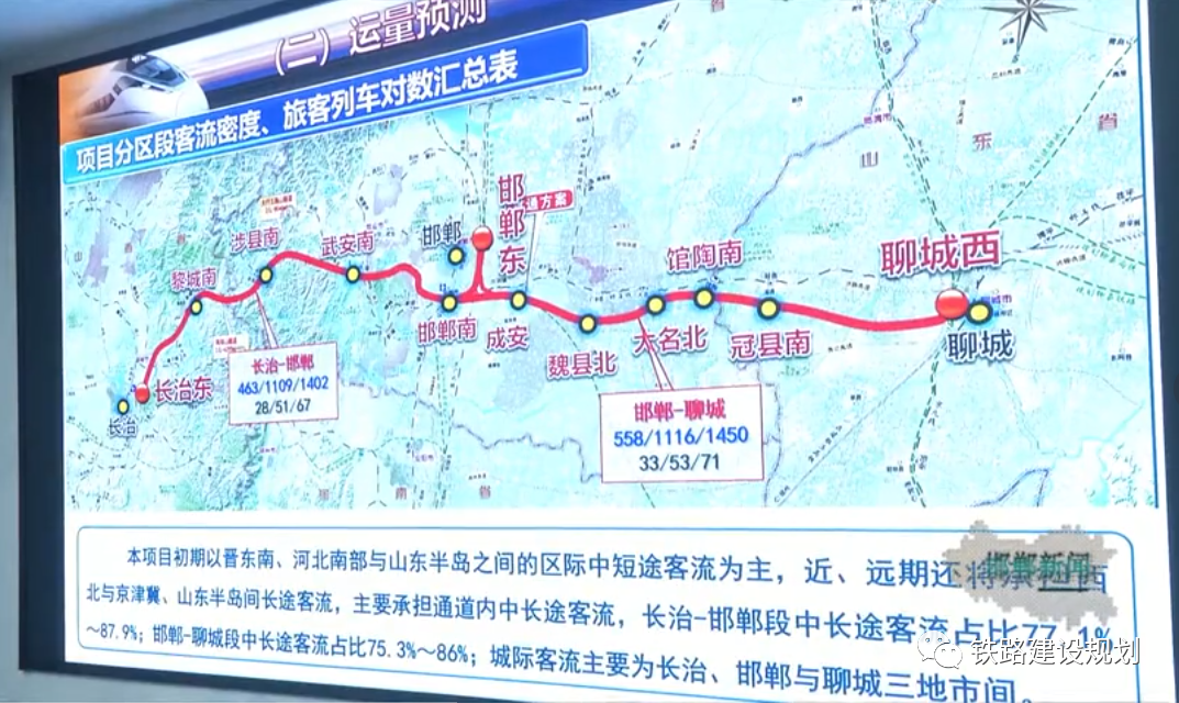 项目在路网规划中可形成晋东南、冀南、鲁西至北京方向的快速铁路辅助通道,实现沿线各地至济南、石家庄、太原和郑州4个省会的1小时高铁圈。同时,与呼南通道焦洛平高铁连接后,可构建西北、西南地区至华北、山东半岛方向的又一快捷高铁通路,填补青银通道与陆桥通道之间的路网空白。