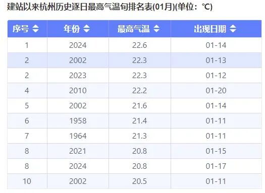 对于杭州而言,这股暖意主要体现在白天的最高气温上。预计从今天起到18日,气温将稳步回升,白天的最高气温基本维持在19-20℃的高位。事实上,在1月中旬的历史气象记录中,杭州并不乏20℃以上的“暖冬”天气。尤其是在全球气候变暖的大背景下,此类“冬日暖阳”的出现频率正逐年增加。