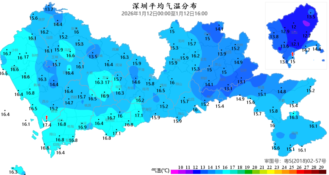 深圳日平均气温普遍在15-17℃