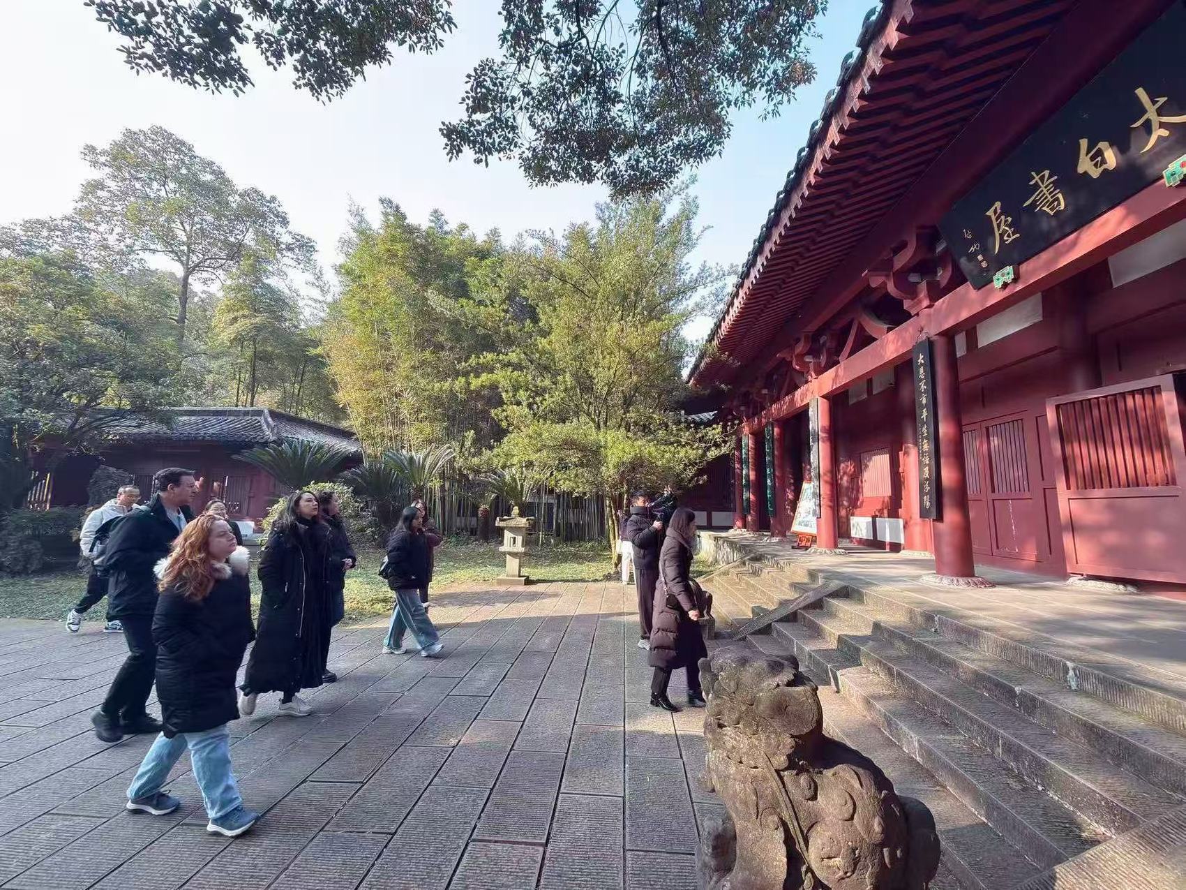 为了探寻诗仙李白的成长轨迹,当天下午,拉美青年文学翻译家们又前往了位于江油市青莲镇的李白故居。这里是李白度过青少年时期的地方,翻译家们漫步在青石板路上,认真聆听着导游讲解李白在这里生活的点滴,了解他如何在这片土地上汲取灵感,孕育出早期的诗歌创作。在故居的陈列室里,展出的李白青少年时期相关的文物和文献,进一步加深了他们对诗人成长背景的认识,也让这场跨越千年的“相会”更加立体和深刻。