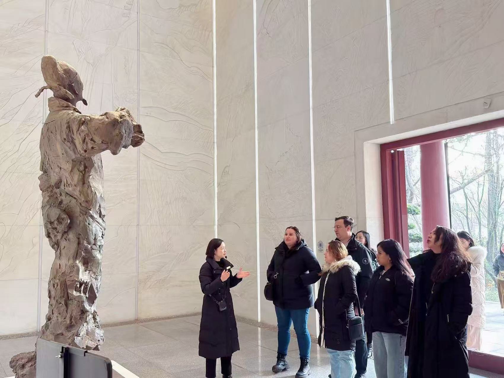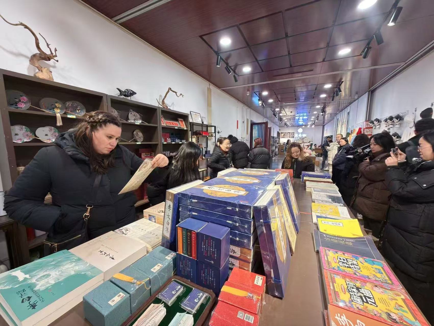 在讲解员的生动介绍下,他们驻足于一幅幅描绘李白生平的画作前,仔细聆听其中的典故,感受着诗人从小便显露的执着与才情。当看到《蜀道难》《将进酒》等千古名篇时,翻译家们纷纷拿出手机拍照记录,并不时低声交流着诗歌中蕴含的磅礴气势与浪漫情怀。
