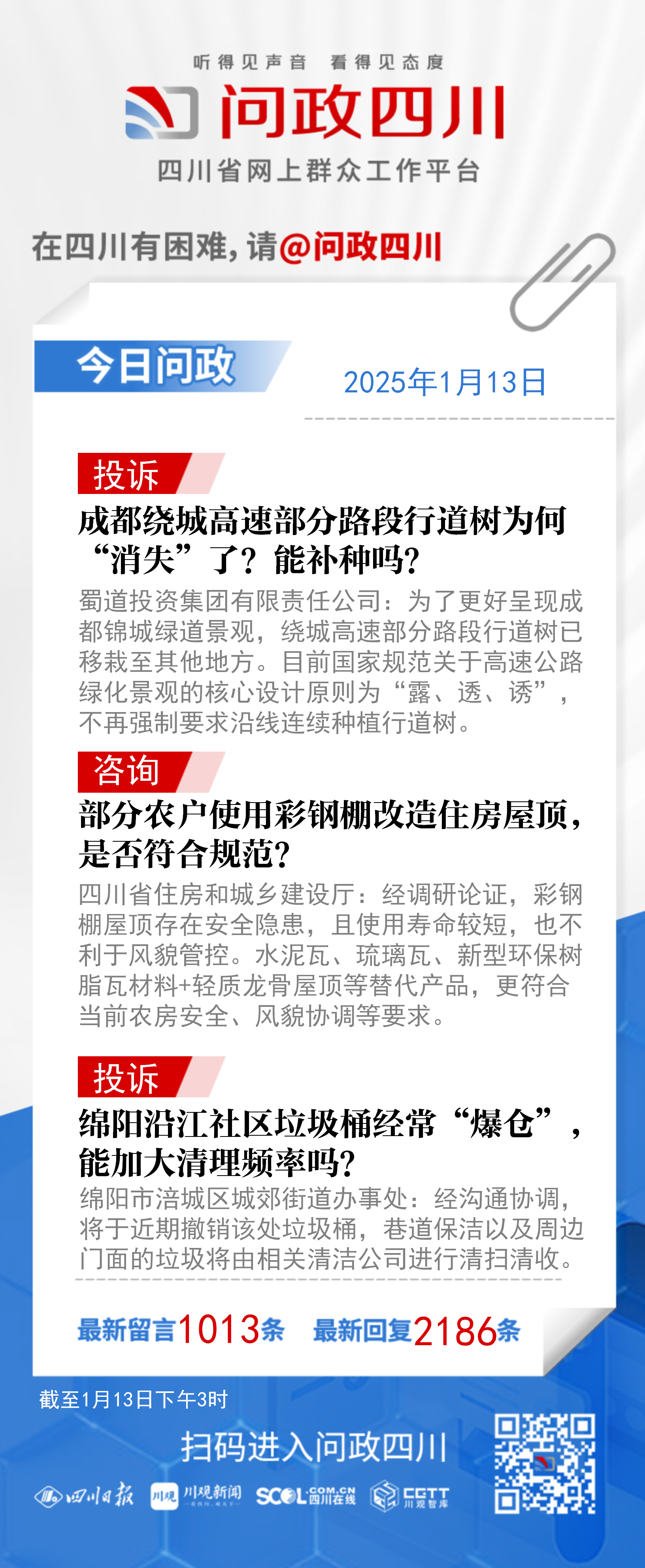 绕城高速绿化“露透诱”听着新鲜,但光秃秃的确实少了点生气。彩钢棚整改是好事,不过替换材料也得考虑农户实际成本。清运垃圾、规划航线这些民生事,有回应有动作就值得点赞,关键要说到做到,让改变看得见。