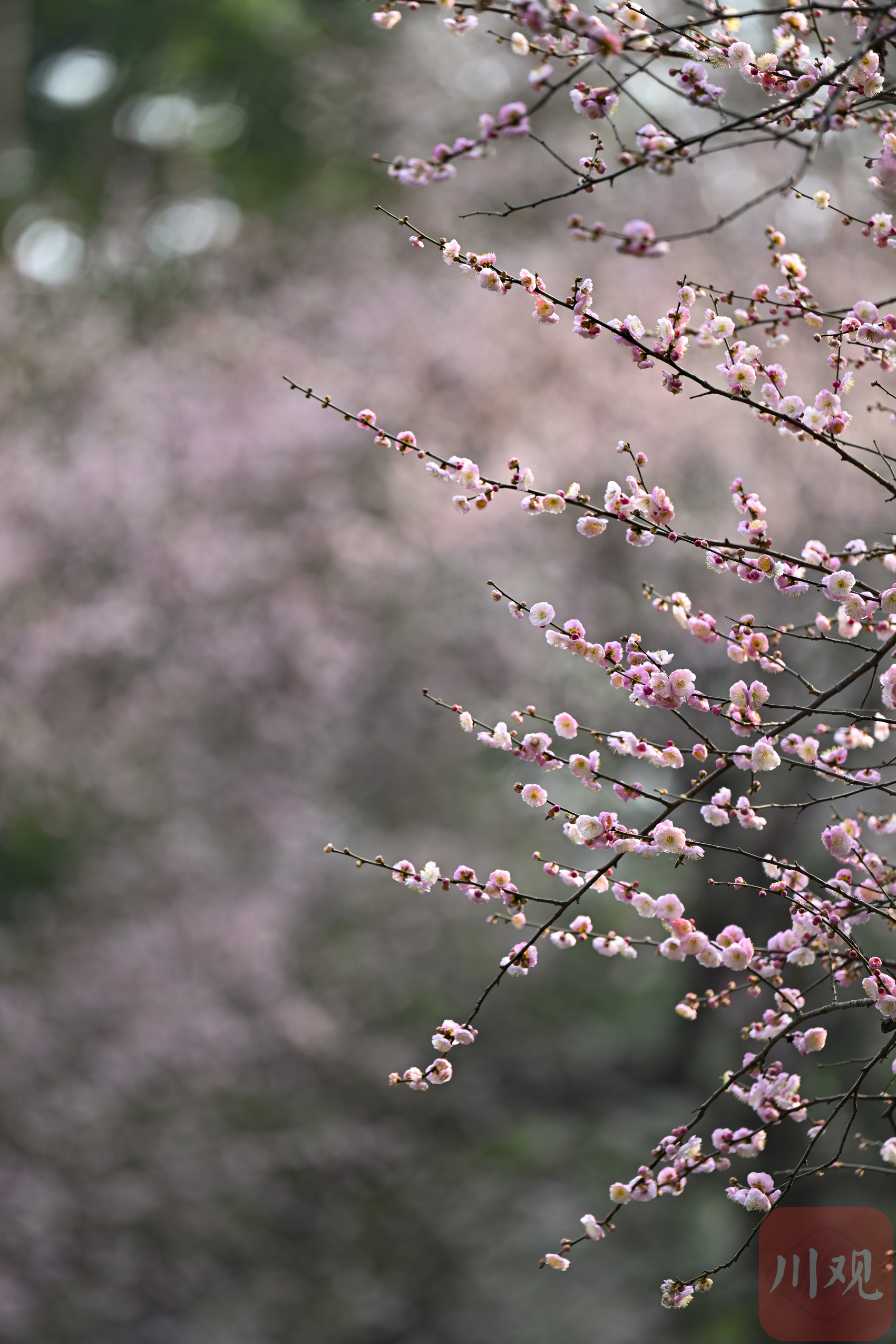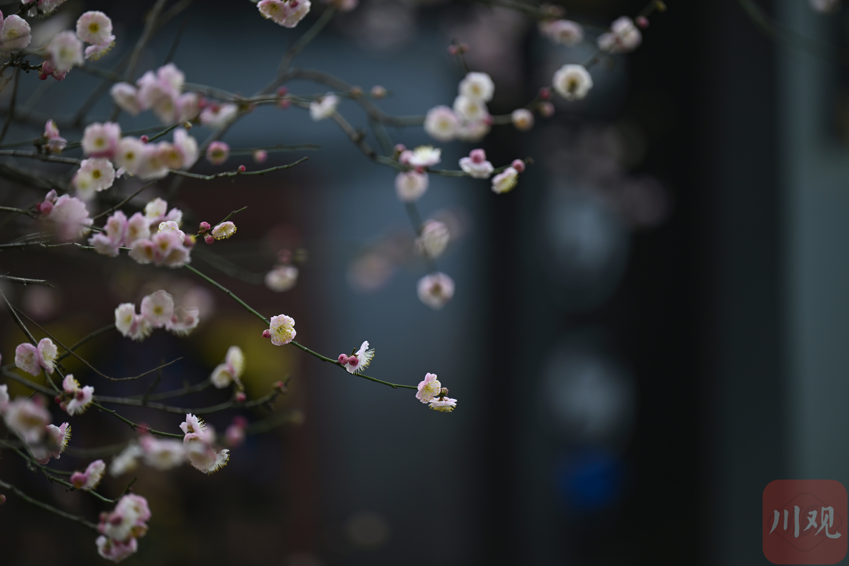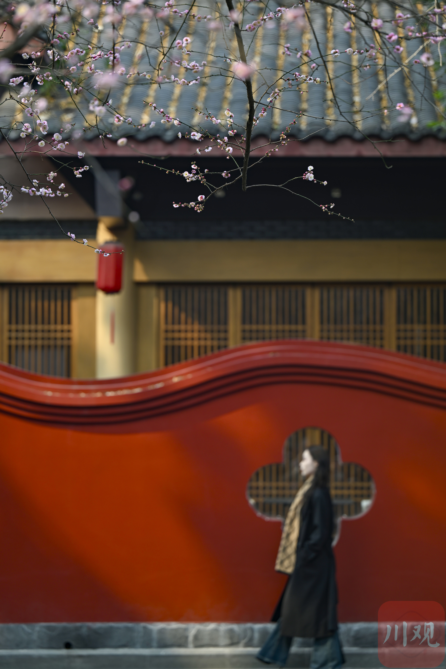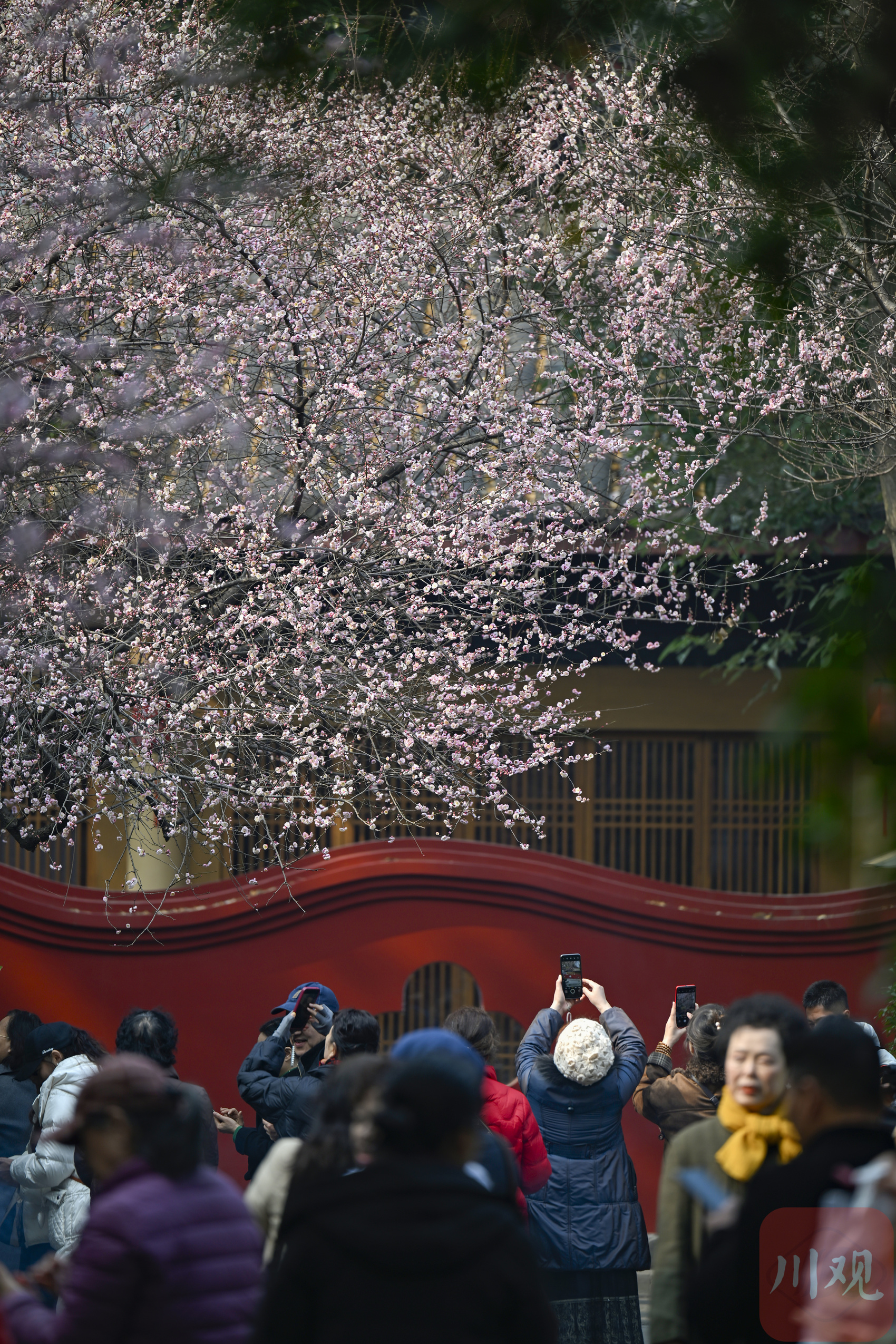 1月13日,冬日暖阳洒满蓉城,成都青羊宫内粉梅开得格外繁茂。虬曲的枝丫斜倚红墙黛瓦,花瓣簌簌飘落,让人恍若穿越千年时光。