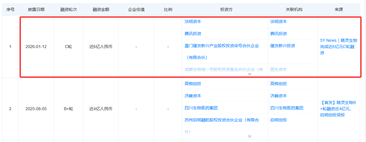 值得关注的是,从时间来看,这是成都赜灵生物继2025年8月官宣完成近4亿元B+轮融资之后,半年内再一次完成的新一轮大额融资。