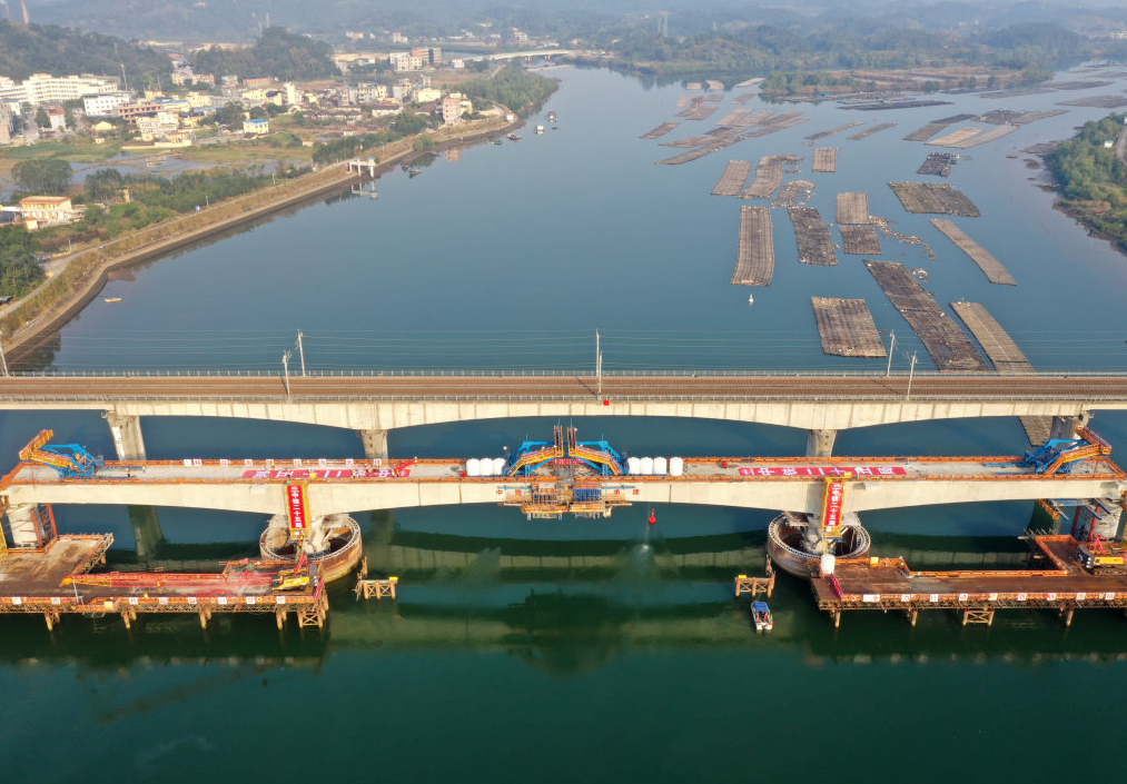 1月13日,南防铁路钦州至防城港段增建二线工程茅岭江特大桥连续梁主跨顺利合龙。南防铁路钦州至防城港段增建二线工程正线全长53.33公里,茅岭江特大桥是全线控制性工程,全长1087.94米。