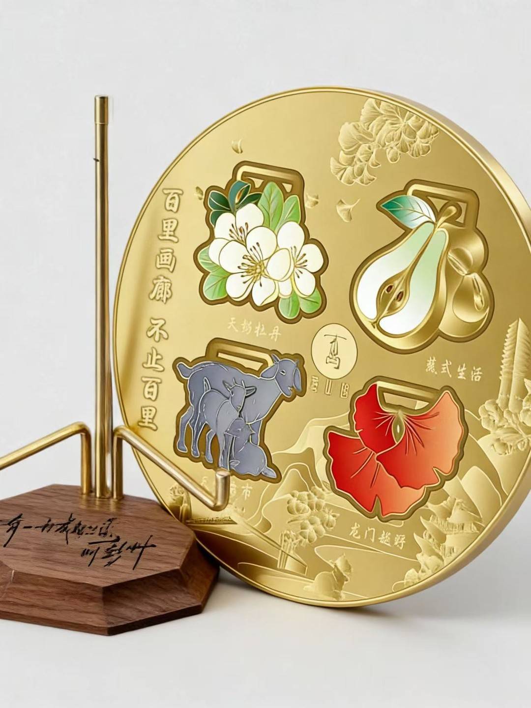四季活动的奖牌分别呼应彭州“天府药市” “龙门越野”“ 天彭牡丹”“ 蔬式生活”四大垂类IP以及葛仙山四季风物,既是徒步打卡的纪念,也是兼具收藏价值与美学意蕴的文创产品。它将山水之韵、风物之盛与“彭派生活”的悠然意趣,凝铸于方寸之间,献给每一位热爱行走、品味生活的市民游客。