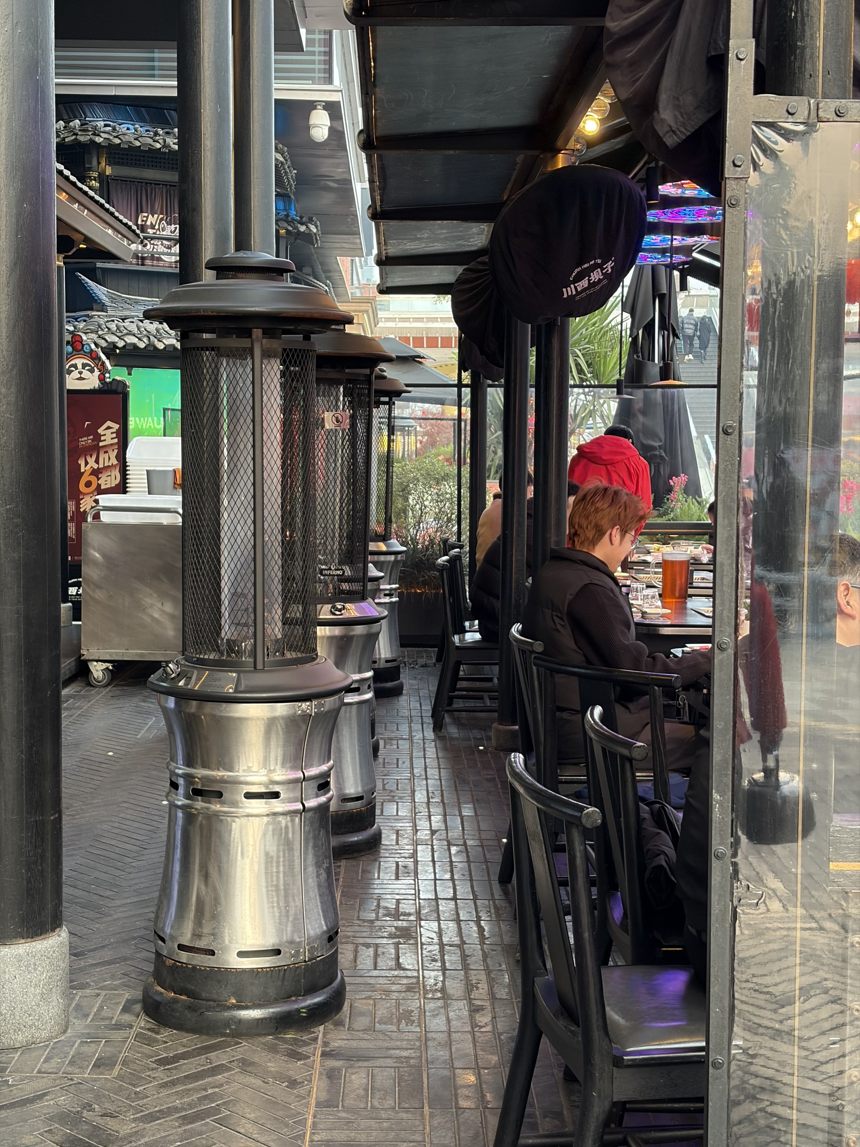 “短租的客户主要是为了搞年会、搞活动。”商家直言,这种定价策略,锁定两类人群:月租230元的“白菜价”,让火锅店、酒吧、咖啡馆等餐饮商家能以低成本维持外摆区的“热度”;而短租的高溢价,则牢牢抓住了春节前扎堆的派对和年会红利。