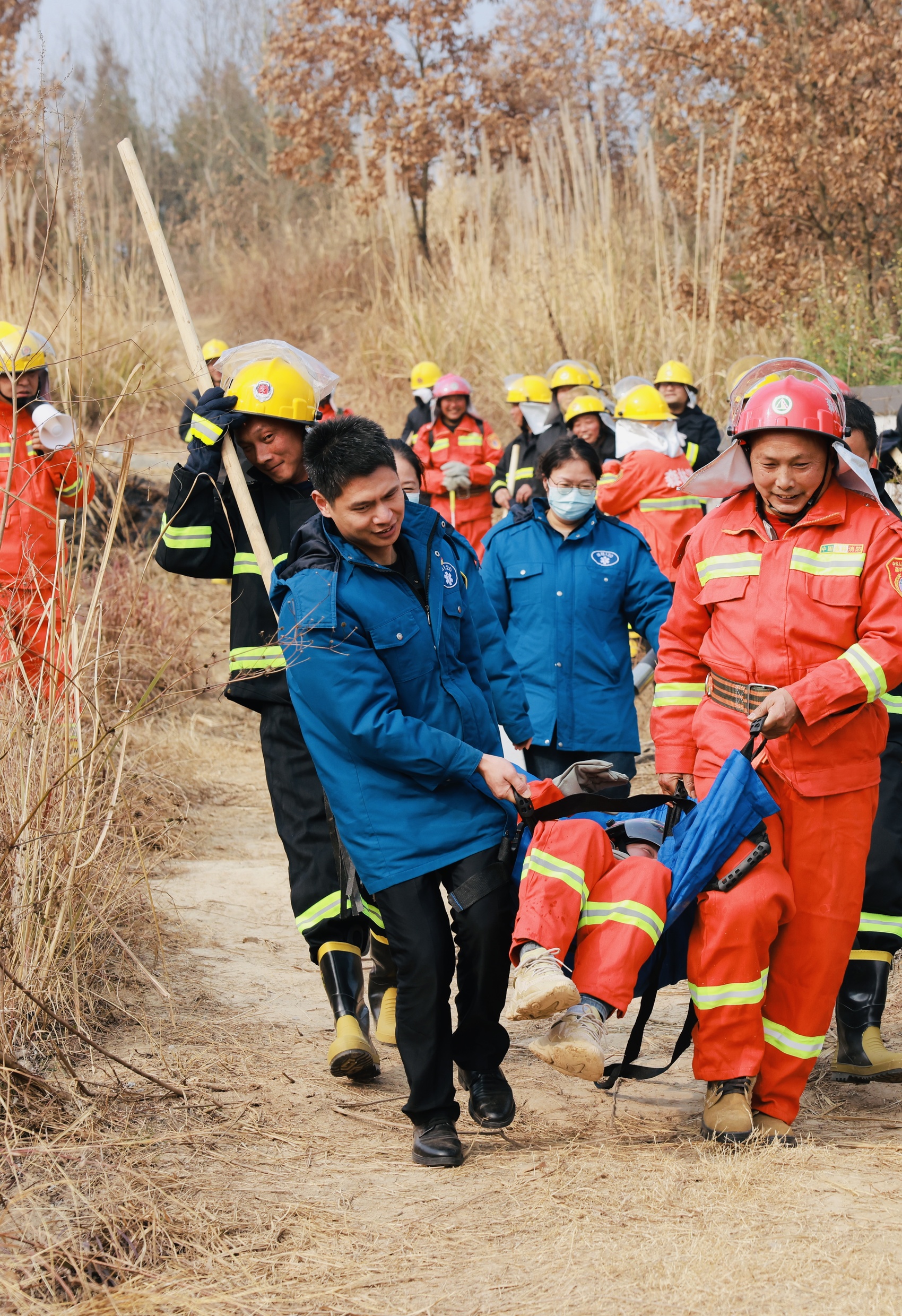 在指挥部的调度下,救援人员分组行动,一部分紧急开辟隔离带,另一部分运用风力灭火机、背负式水枪等工具扑打压制火头。演练还模拟了风向突变、人员受伤等突发情况。通过扑打、切割、合围等多种战术配合,“火势”被成功控制并扑灭,演练达到预期目标。