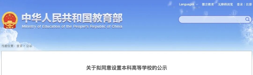 关于拟同意设置本科高等学校的公示