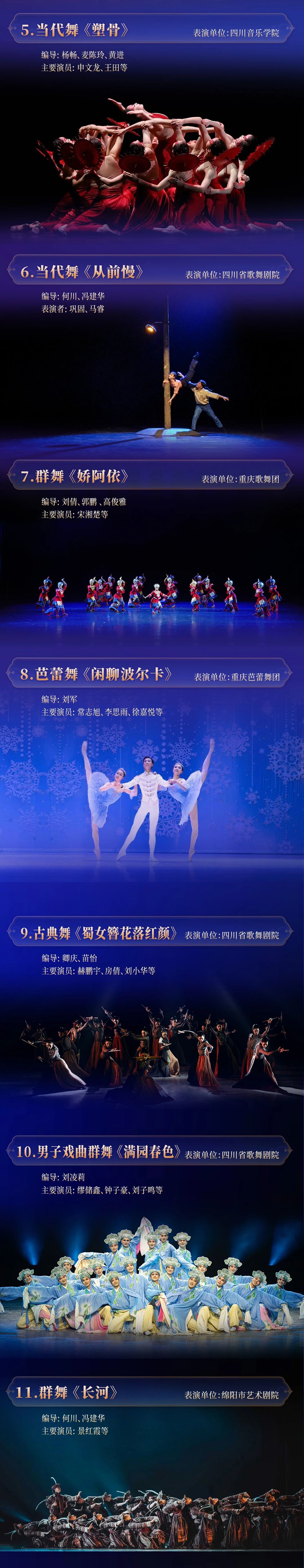 此次展演汇聚了川渝两地众多优秀的舞蹈作品,这些作品题材丰富、形式多样,既有展现川渝地域文化特色的传统舞蹈,也有融合现代元素的创新之作。舞蹈创作者们以独特的视角和精湛的技艺,将川渝地区的自然风光、人文历史、民俗风情等元素巧妙融入舞蹈之中,通过舞者的肢体语言,生动地讲述着一个个动人的故事。