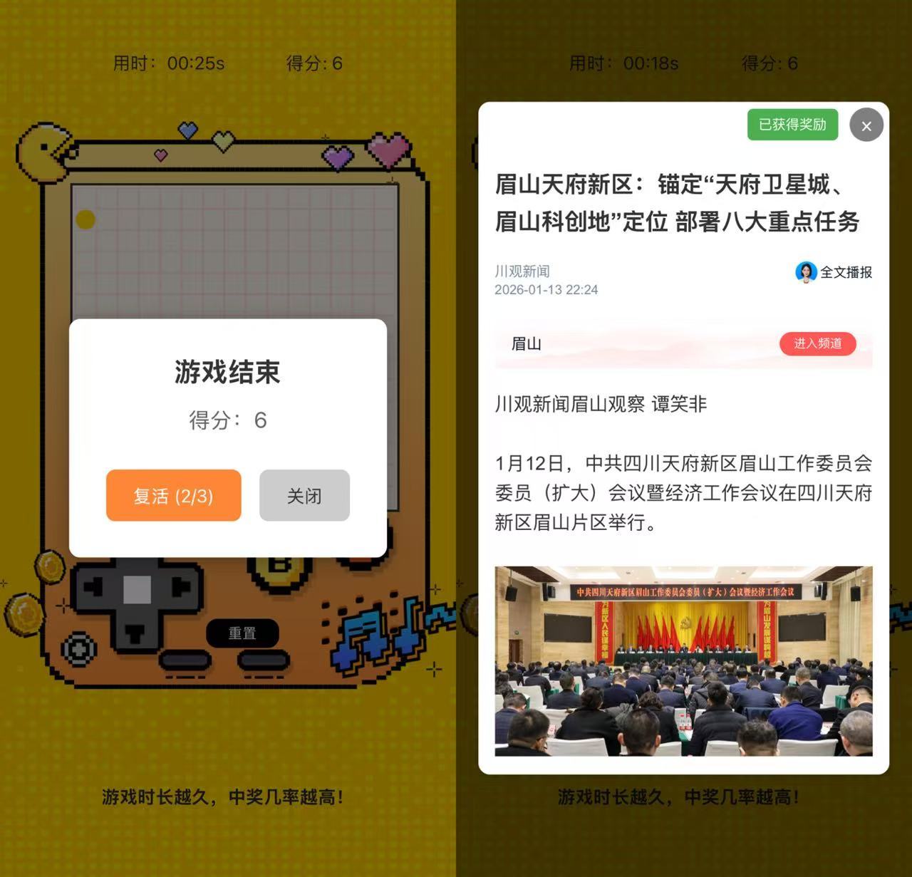 方式一:在川观新闻首页,点击右下方悬浮球,找到“农特产”拼图小游戏图片,点击即可参与;