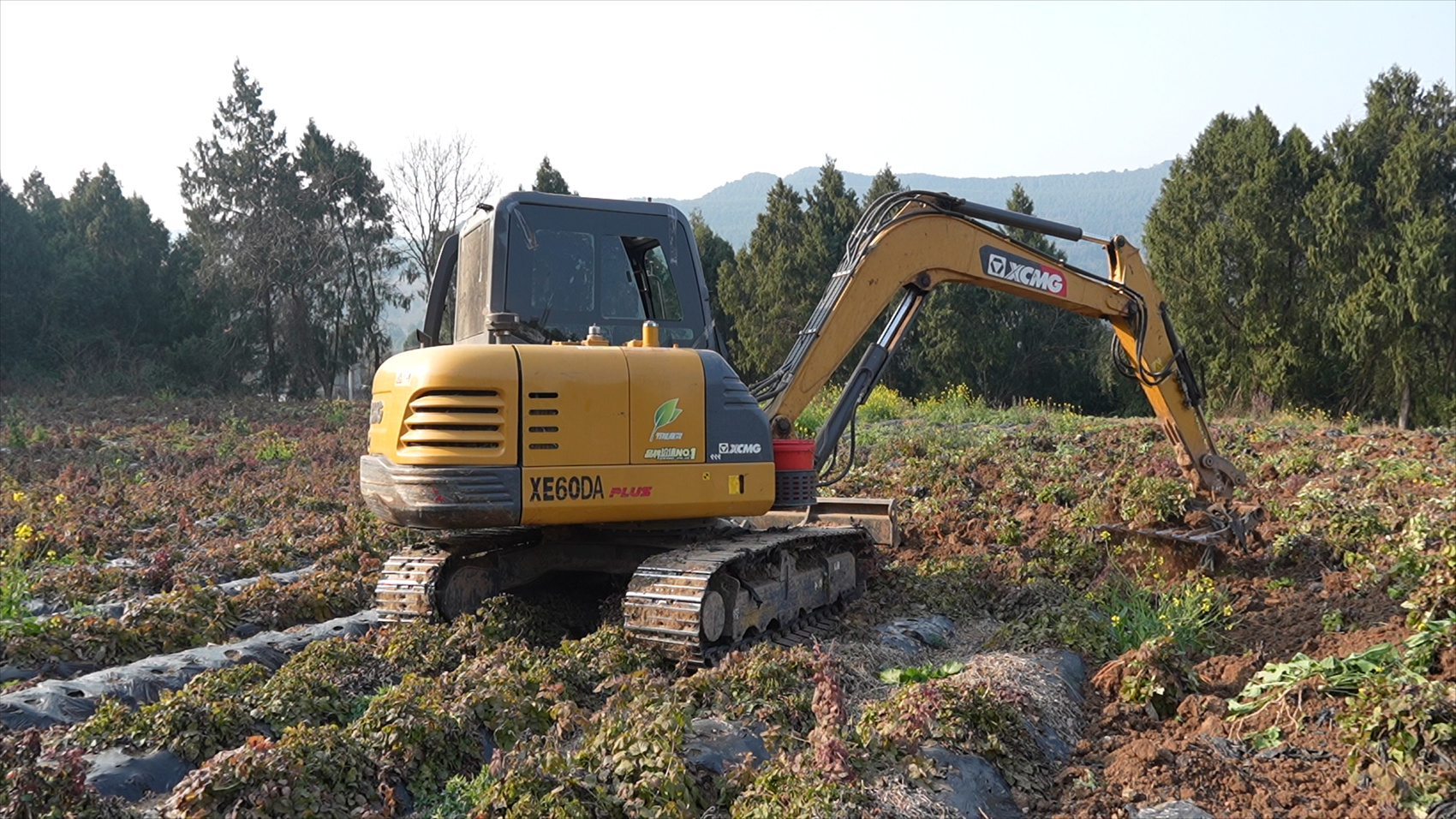 自强镇通过机械采收丹参。梓潼融媒供图