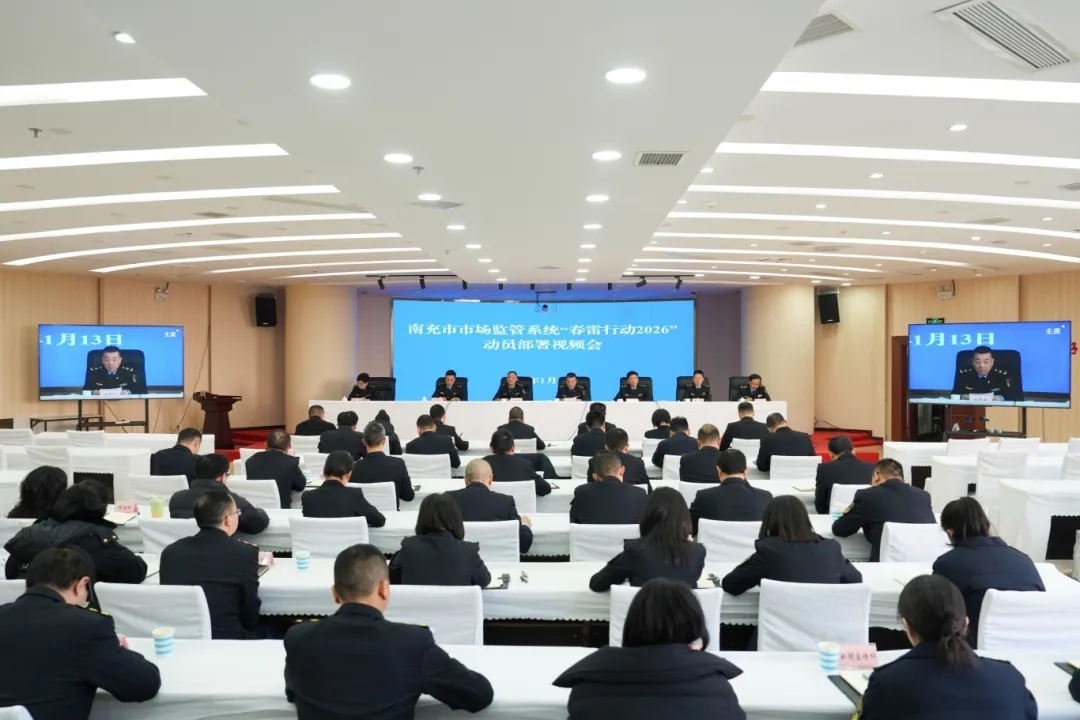 1月13日下午,南充市市场监管局组织召开全市市场监管系统“春雷行动2026”动员部署会,市局党组书记、局长杨春林出席会议并作动员讲话,对行动进行全面部署。市局党组成员、副局长梁建文主持会议,市局党组成员、药品安全总监许永波解读行动方案,顺庆区、高坪区、西充县市场监管局作表态发言。