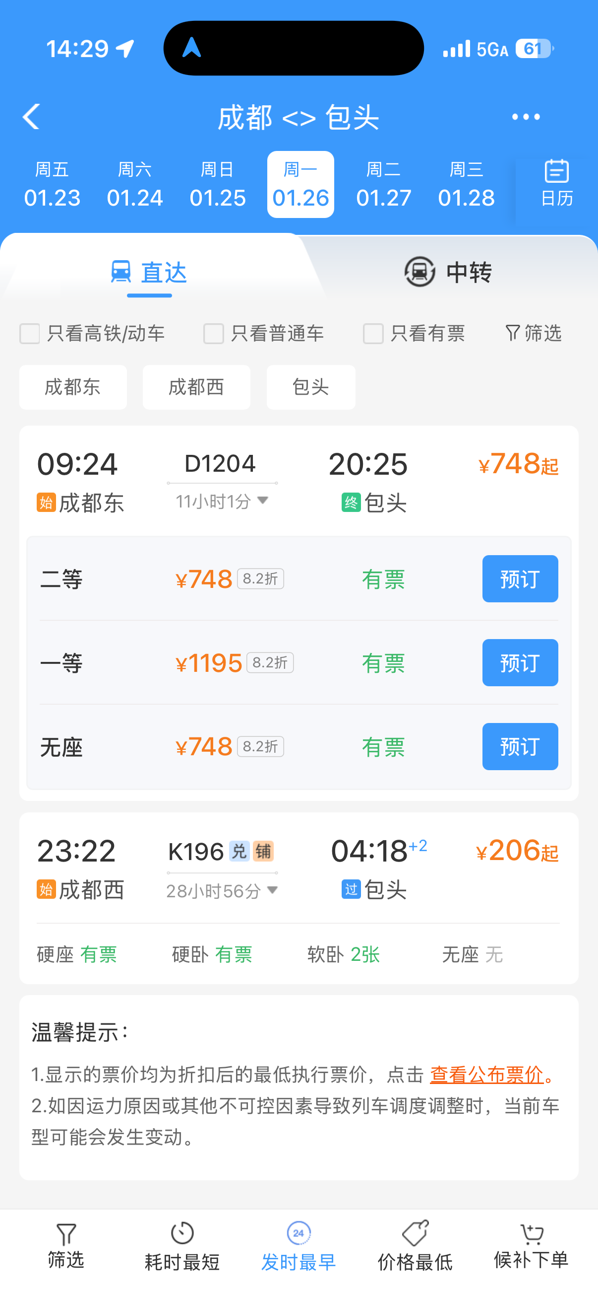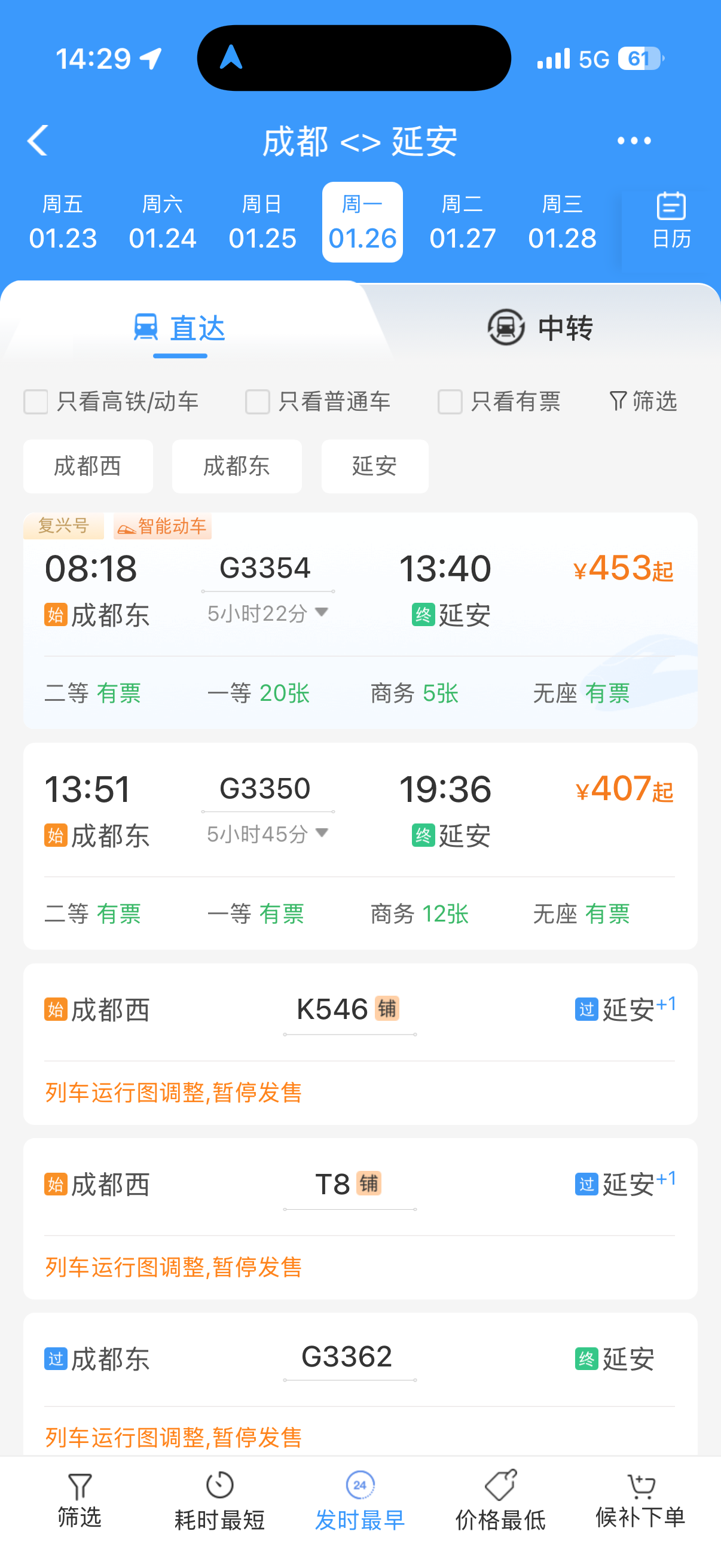 记者查询12306客户端发现,从成都至包头、延安方向的动车组已经上线。以延安方向为例,目前普速列车运行时间在15~20小时之间,动车只需要5个多小时就能到达,二等座票价最低407元。