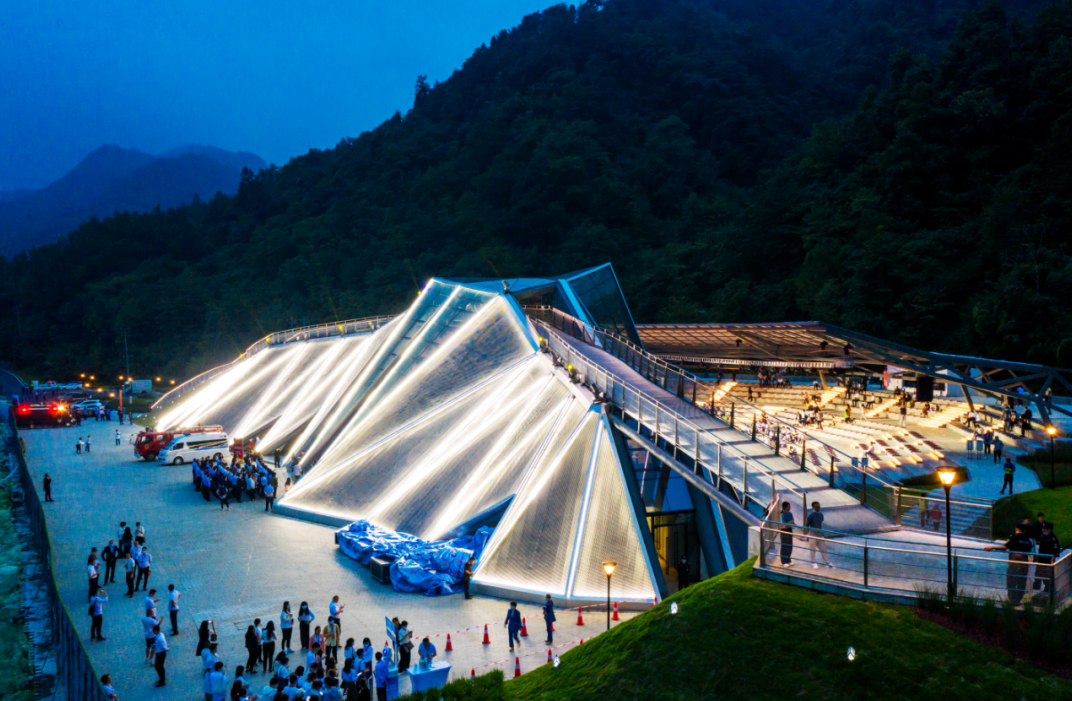 夜晚,钻石音乐厅在白鹿镇山林间闪耀不息