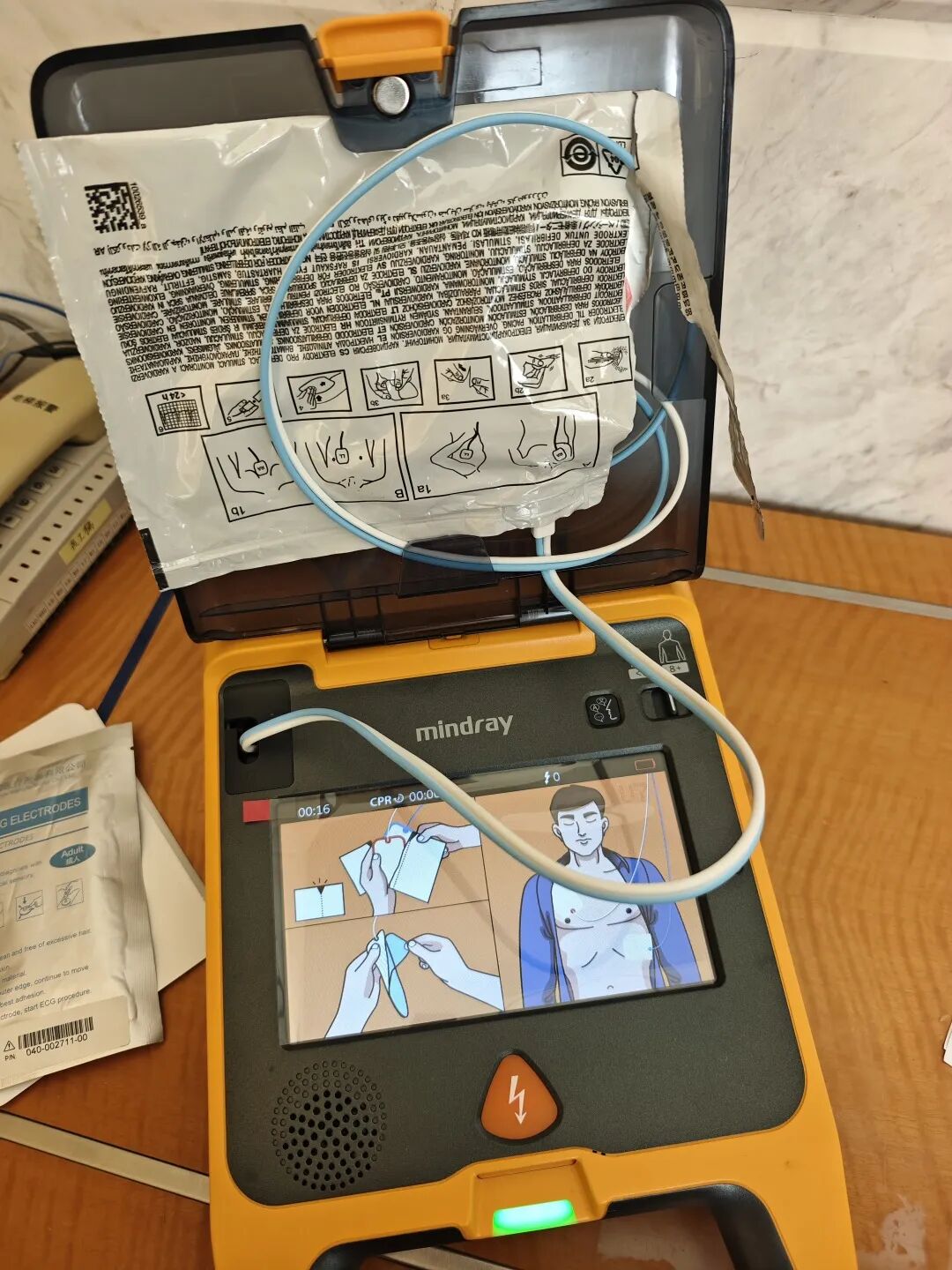 邬杰立即指挥现场人员继续拨打120急救电话,同时迅速取来安装在酒店大堂的AED设备,按照平时培训的流程,为患者进行心肺复苏并使用AED进行除颤。经过多轮CPR和AED除颤后,患者在现场恢复了自主心跳和呼吸。经过心脏支架手术治疗后,患者已经出院回到家中休养。