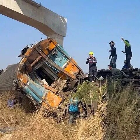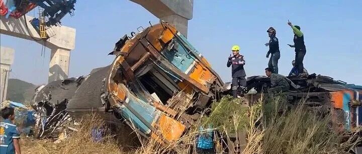 报道说,一台起重机在呵叻府高铁项目施工过程中坠落,砸中一列行驶中的客运列车,导致车厢起火并脱轨。救援人员已成功控制火势,事故原因正在调查中。
