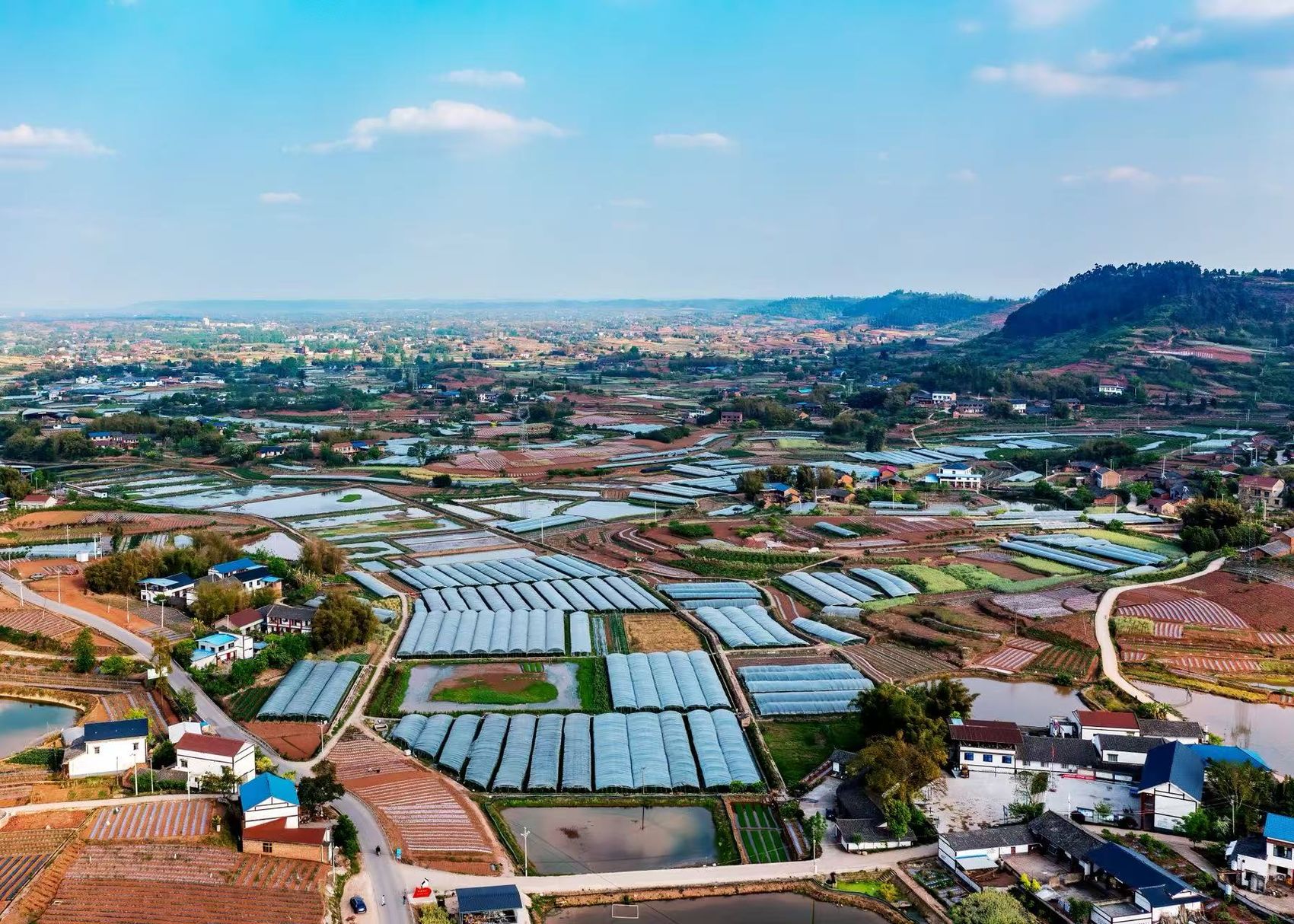 这片被村民称为“番茄小区”的院子,是“荣县东南粮经复合产业带乐德示范片区”的核心区域。高标准核心区域面积达100亩,是乐德镇党委政府重点打造的基地。在这里,每个大棚都像一栋房屋牢固大气,紧密相连且错落有致;每一条采摘路都是红砖铺成,方便游客体验;每一个大棚内都建有滴管、雾化等智能设施,确保番茄生长环境最优。
