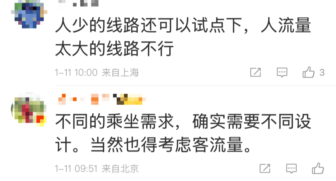 有网友在帖文中附上扶手座椅的图片,并直言“这种座椅太好了”。跟帖中,多数意见认为,与传统长条座椅相比,扶手座椅明确了个人空间,避免了“劈叉”坐、横躺占座等情况,能保障更多乘客的权益。